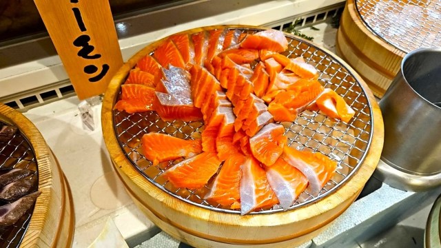Standing around in a puddle of your own saliva as you look around at all the different delicacies on display, you’ll start to wander back to some of your favorites from when you went up before, but then the staff bring out some salmon roe.