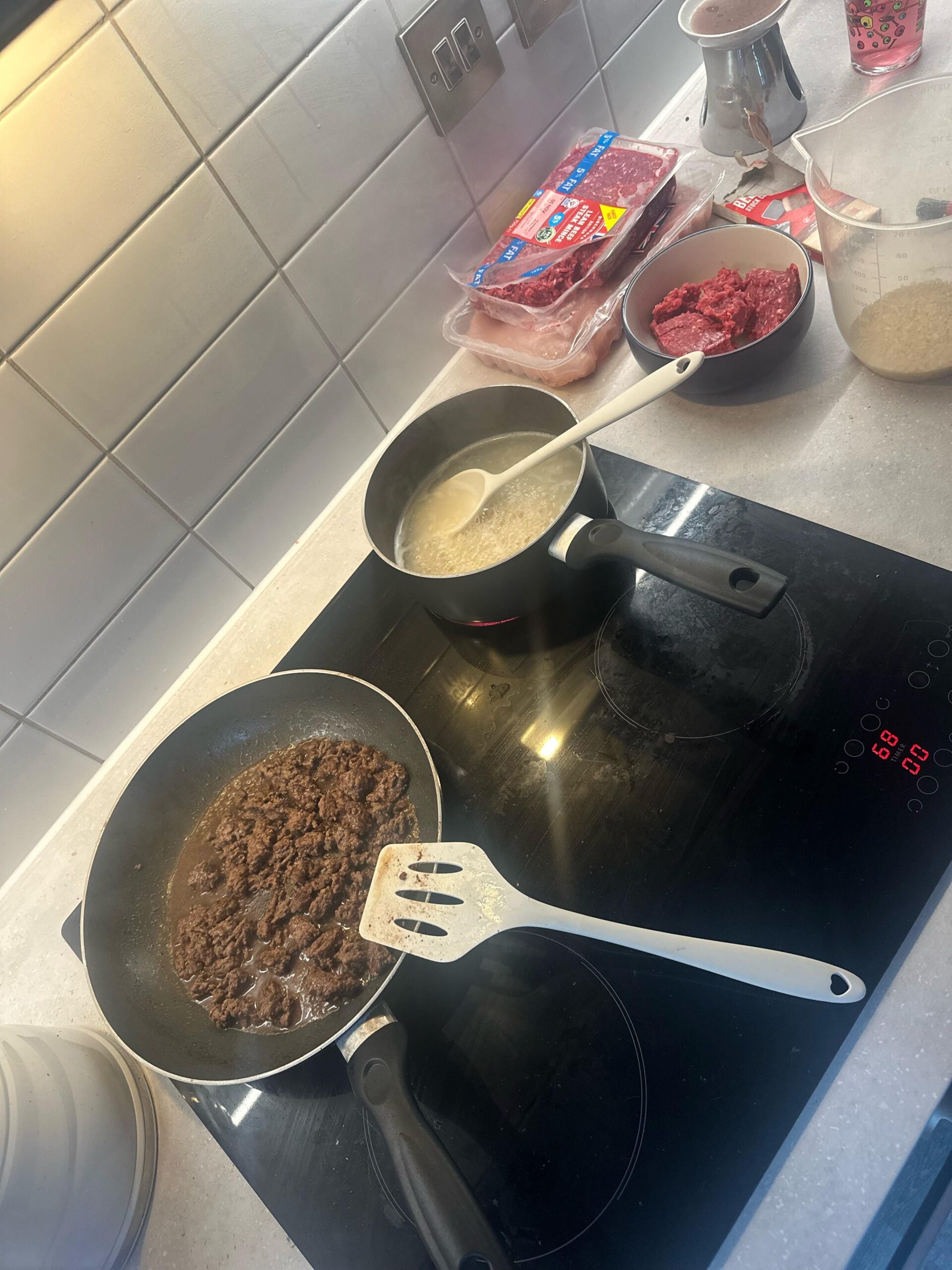 The recipe is cool your mince add beef flavouring and cook the rice. Normally I have greens but forgot this time around