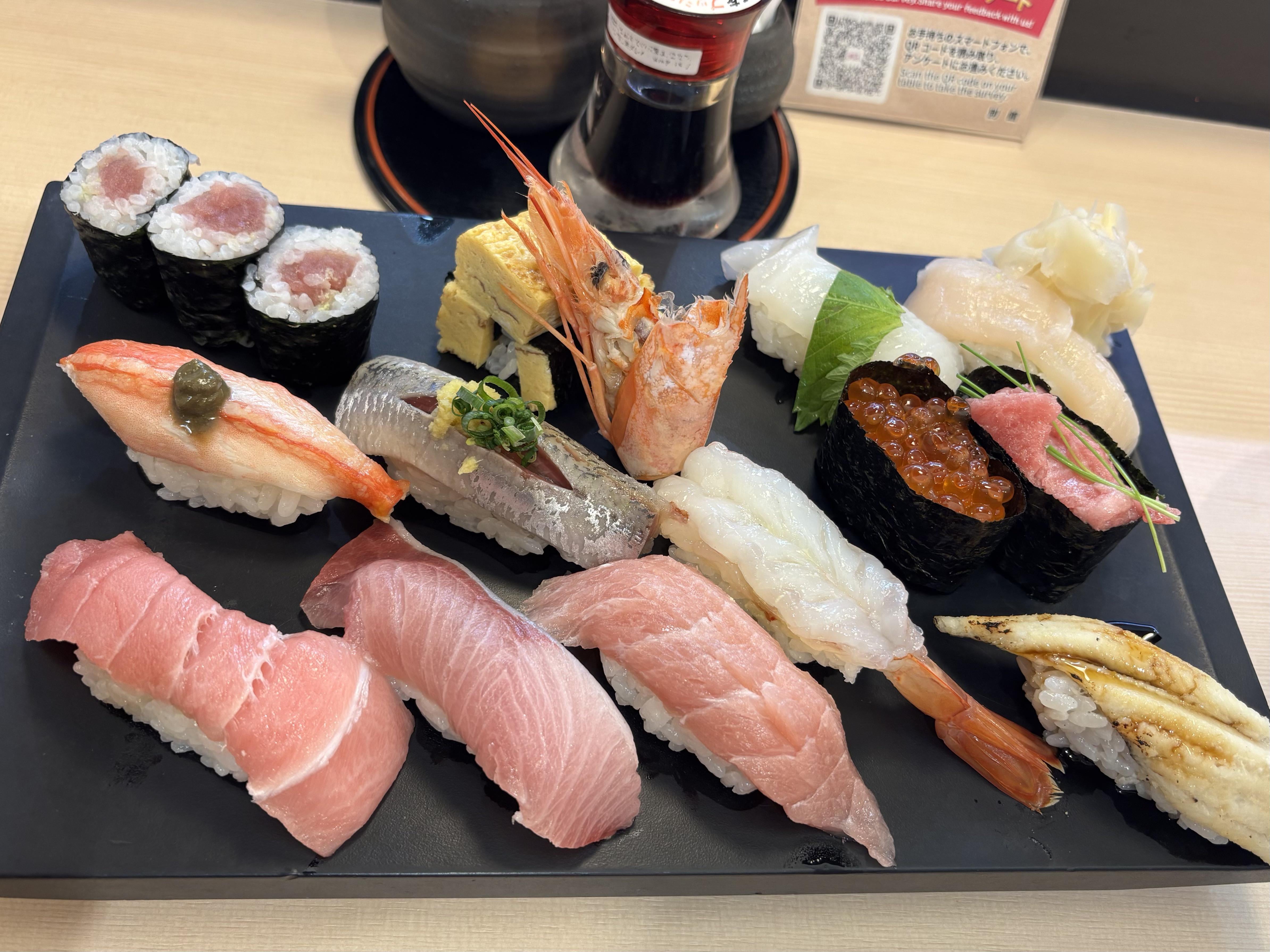 11 1/2 set for $25 is kinda overpriced for this quality. Usually these sets go for 2000 yen or about $15. 3000 yen is pushing it. But Idk how lazy the sushi chef was, a piece of shiso leaf on top of a squid, 4 pieces of chives on chutoro gunkan not even chopped up. Botan-ebi head look like it about to fall off.