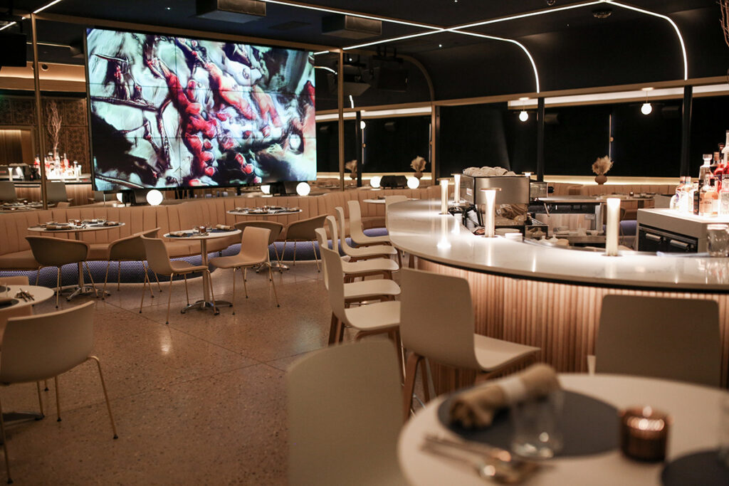 Upon entering, Stella’s Cucina feels like a luxe speakeasy. The discreet entrance opens to an experience that’s impossible to forget. “A lot of heart and passion went into this place,” said Fibel, noting how every detail was designed to transport guests far beyond Boulder. In addition to superb sound and lighting, a regal navy-and-gold color palette, gleaming central bar, and softly curved interiors harmoniously create an atmosphere that is as immersive as it is elegant. “This is not just a place to get dinner,” Fibel explained. “It’s an experience.”
