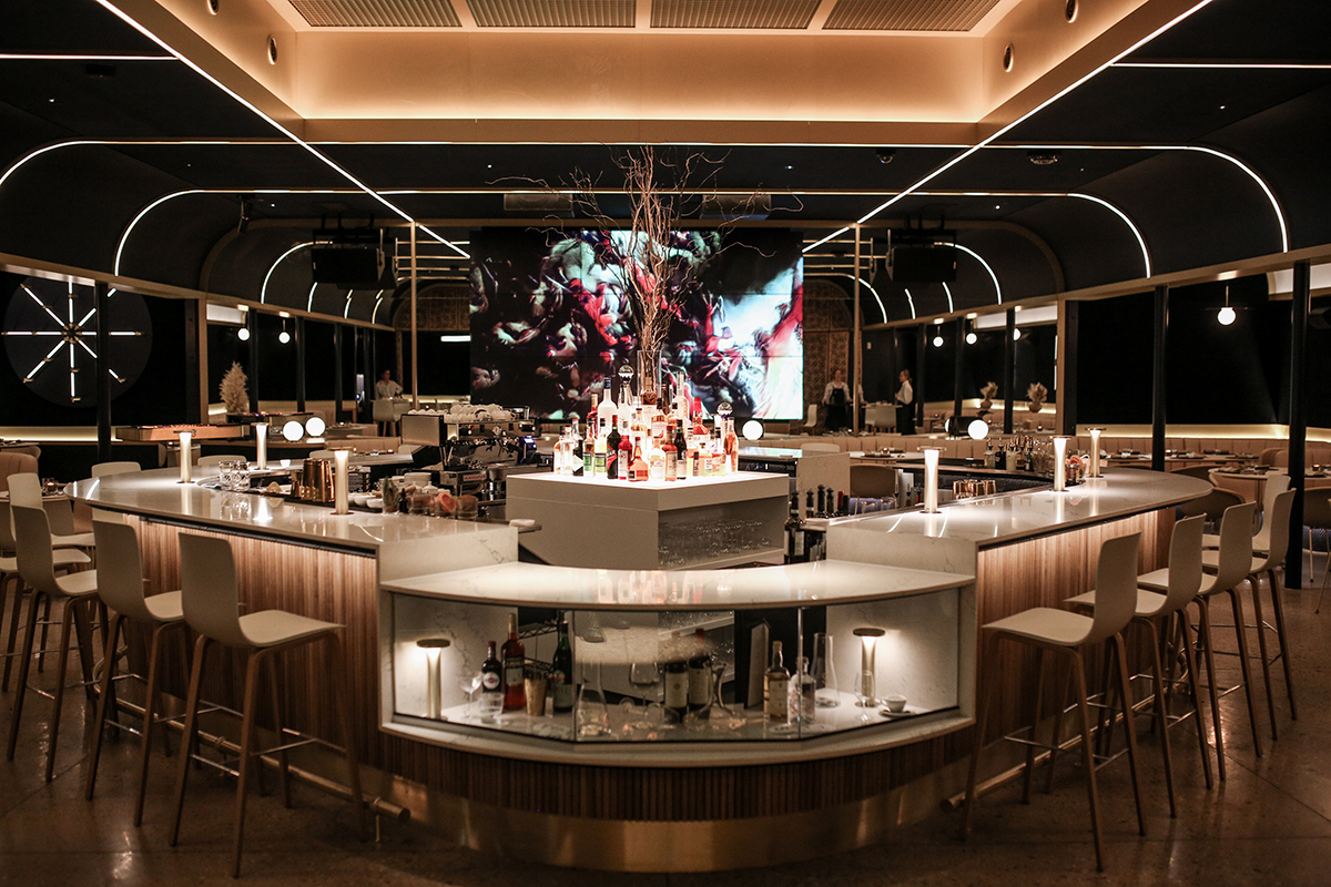 Upon entering, Stella’s Cucina feels like a luxe speakeasy. The discreet entrance opens to an experience that’s impossible to forget. “A lot of heart and passion went into this place,” said Fibel, noting how every detail was designed to transport guests far beyond Boulder. In addition to superb sound and lighting, a regal navy-and-gold color palette, gleaming central bar, and softly curved interiors harmoniously create an atmosphere that is as immersive as it is elegant. “This is not just a place to get dinner,” Fibel explained. “It’s an experience.”