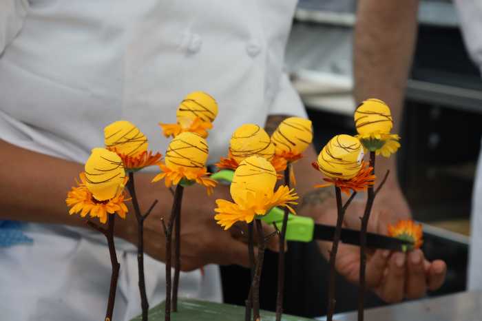 Lollipops resembling bees complete with fragile glass wings made of honey and realistic mushrooms made of chocolate were a few of the nature-inspired sweets at the Academie Culinaire de France first-ever North America Pastry Championship.
