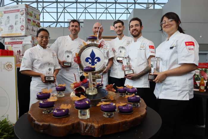 Team 3 — Jeremy Billy, pastry chef at Group la Tanière and Yves Marie Rolland, pastry teacher at Fierbourg Hotel Schools in Quebec, had an advantage on the competition as the two have about 40 years of experience combined and won competitions before, including Pastry Chef of the Year in 2023.