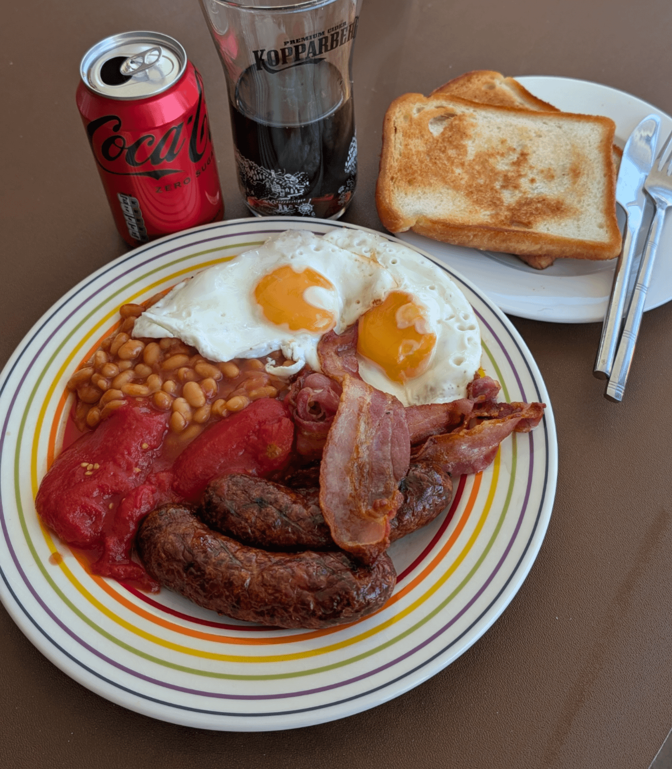 Back home getting spoiled once again, no hasbrowns today but everything else was delicious. I eat the sausages with the tomato, then make egg bacon and bean fried bread sandwiches, my all time favourite sandwich.