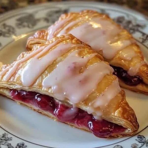 10. Once the turnovers are done and cooled slightly, drizzle the glaze over them.