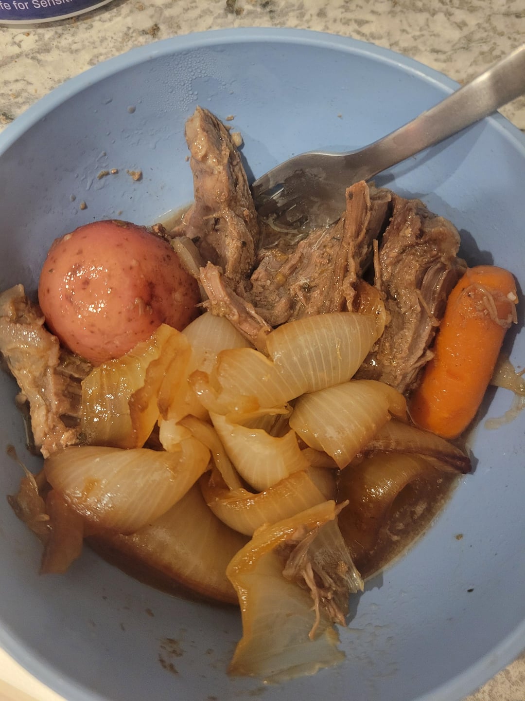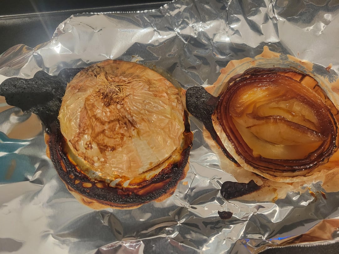 I saw this method described in a post here a couple days ago and had to try it. This onion was life changing. Cut in half, saturated with soy sauce, and baked cut down at 325F for 1.5 hours.