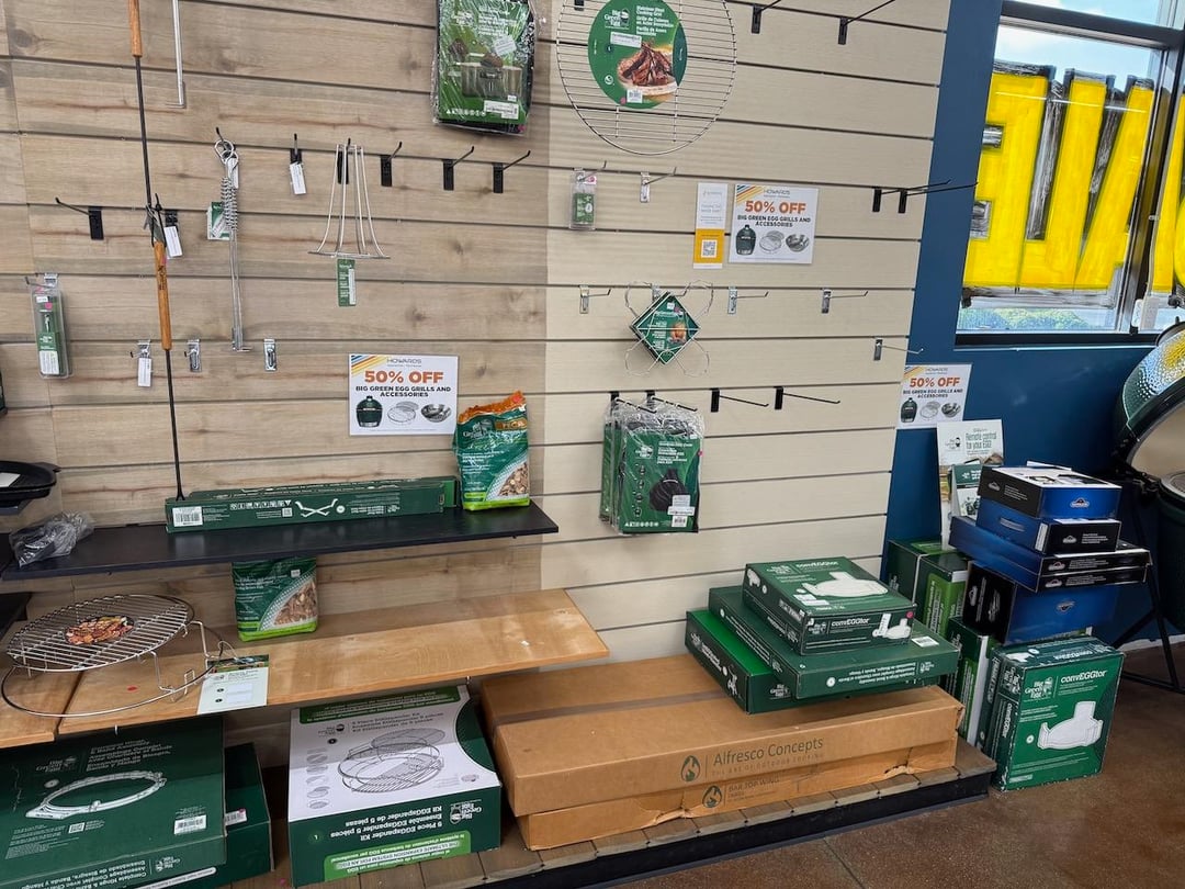 Followed through on a post yesterday that was liquidating all BGE accessories at 70% off. I went in for one thing (the 1-piece conveggtor basket for a large) and came out with this cart of rando green goods.