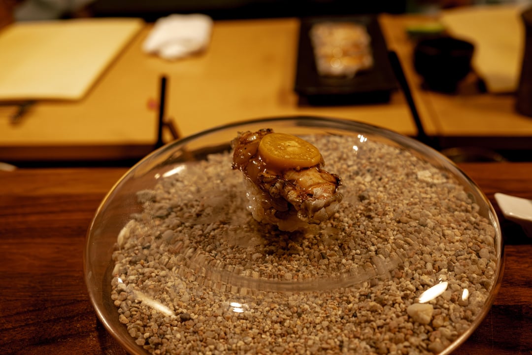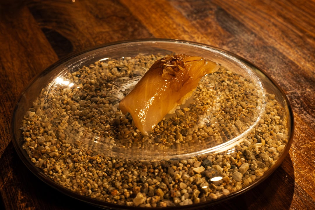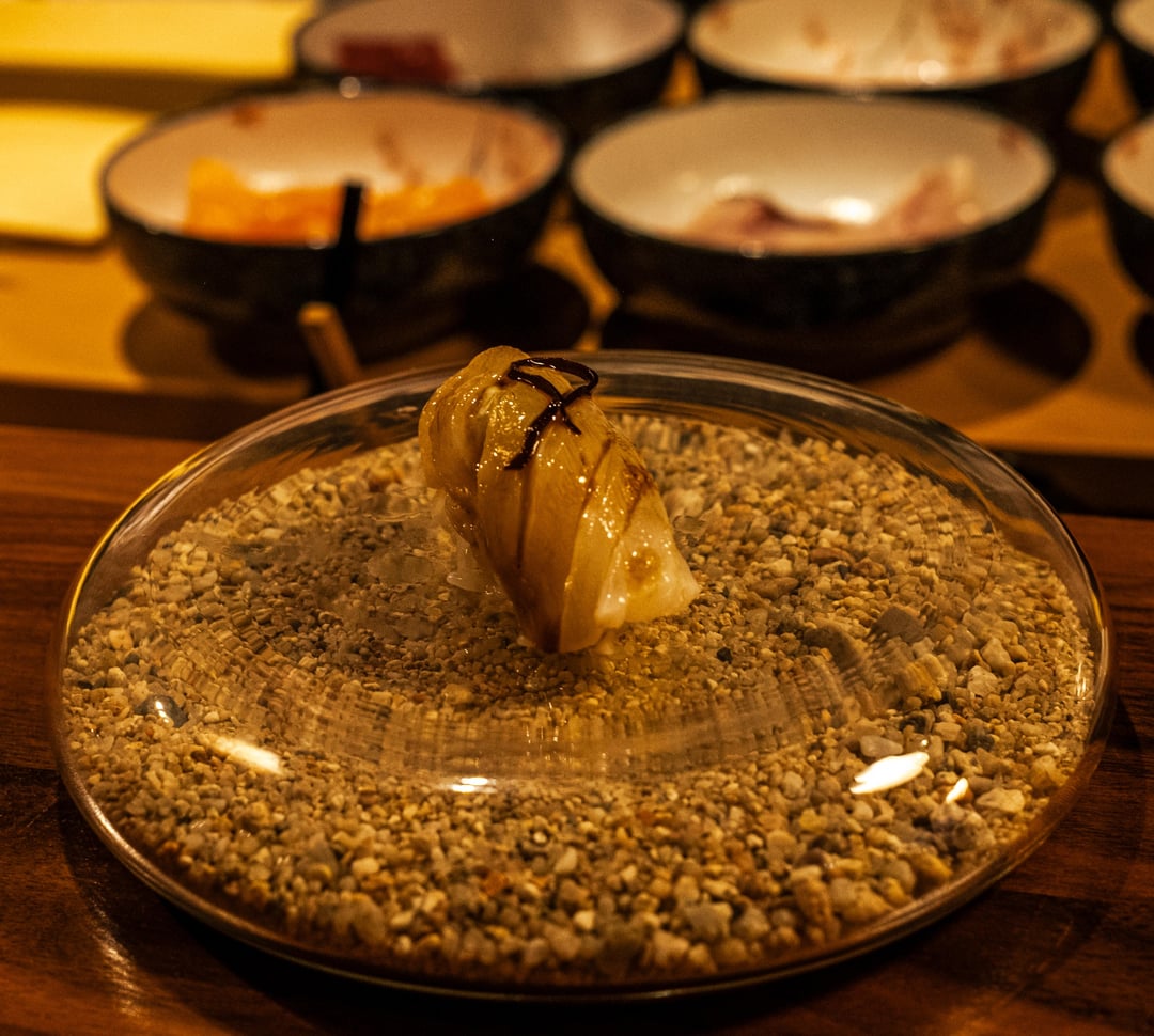 Is that pebble dish a new trend? Maybe I’m a traditionalist but I love to see nigiri served on something that makes it really easy to see the fish, detail of presentation etc. I could see this being interesting for other uses though