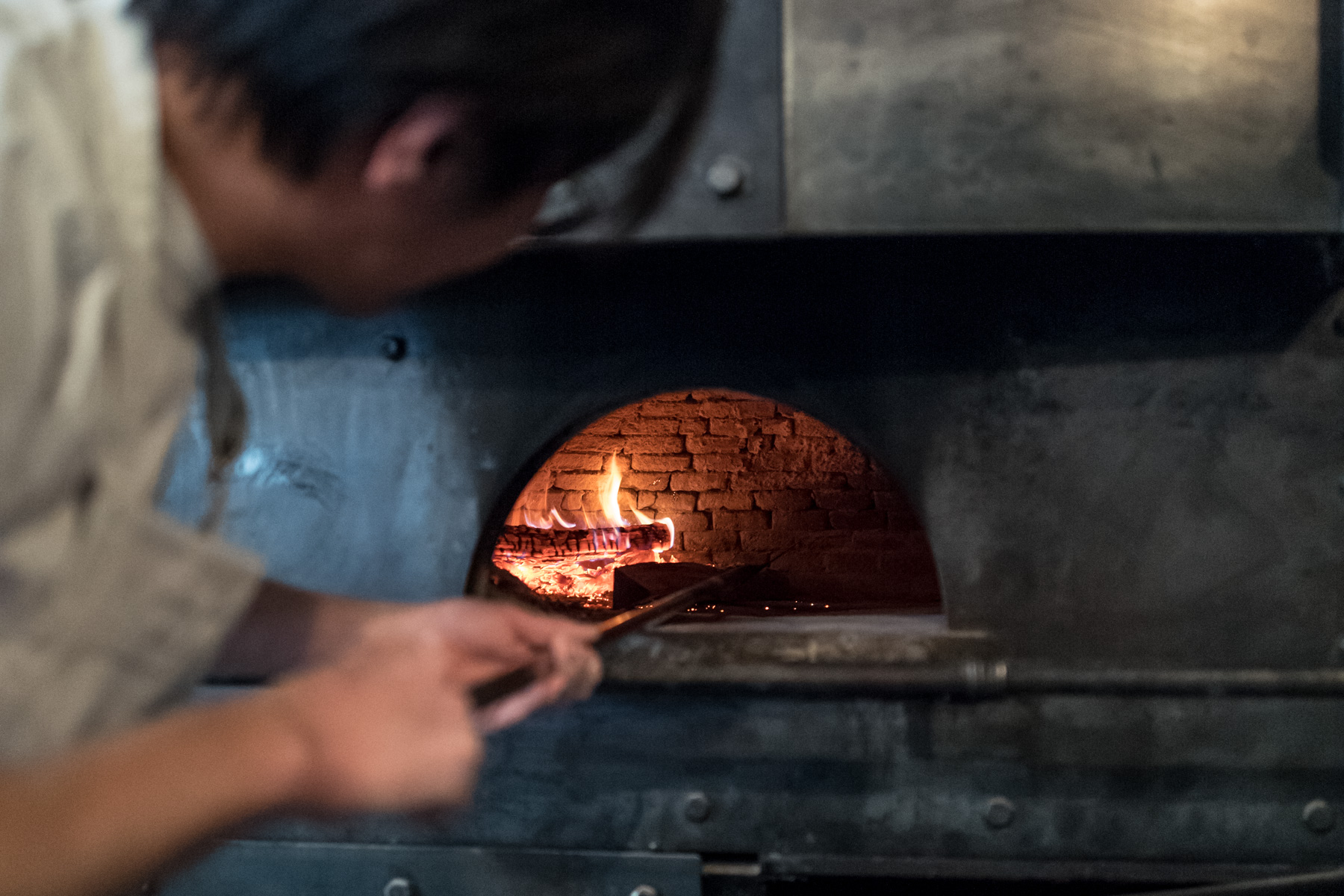 Even PST’s oven is homegrown, the product of a collaboration with a maker of goemonburo (traditional Japanese bathtubs). It burns only Japanese wood: nara (Japanese oak), sakura (cherry blossom), and buna (beech). “Normal Napoli ovens are high and the air gets trapped,” Tamaki explained. “The oven we’ve designed is lower. The movement of air in this new oven is wonderful, two twists before leaving.” And the large-leaf trees he burns have less oil than others, producing less smoke, giving him even greater control and more precision.