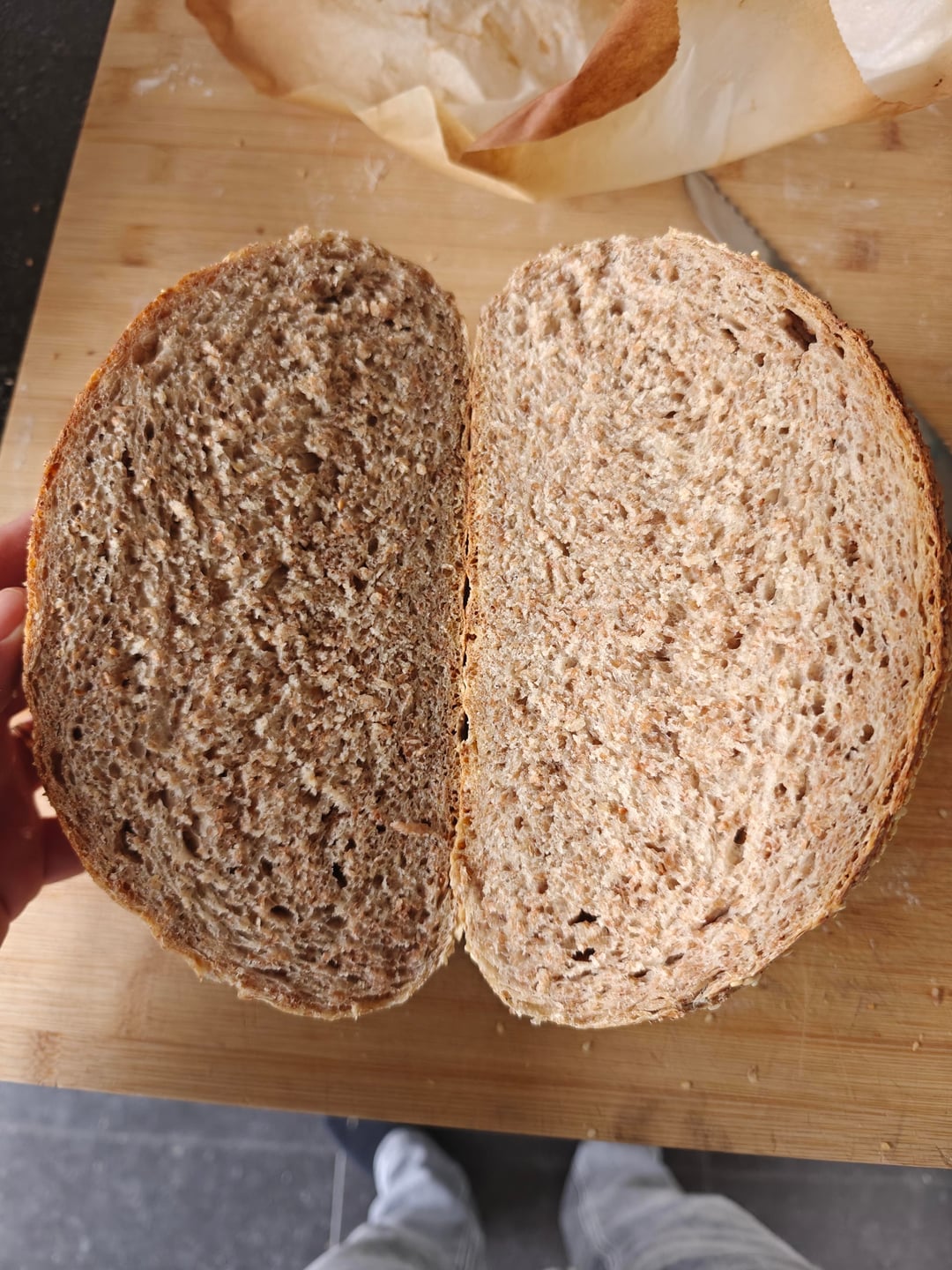 500 g flour (200 whole wheat, 300 ap)