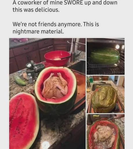Watermelon good. Chicken Good. It’s not hard to understand why someone might try this if you give it a couple milliseconds of thought.
