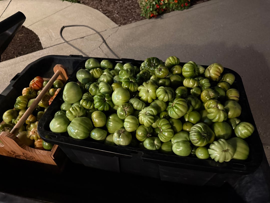 But realistically, unless you’re ready to process all weekend, I think you need to put the word out to neighbors to take a bag home for a fried green tomato dinner.