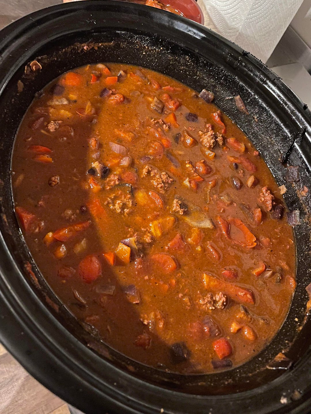 Seen lots of these posts so thought I’d give it a try, got meatball up to 150 broke apart into pot and added rest of chili ingredients, smoked for 3 hours, then finished in the crock pot inside.