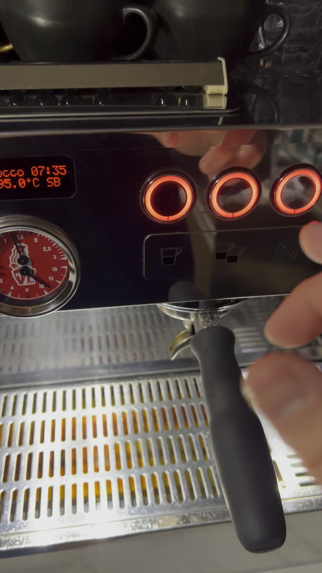 On a 2 group Lm, puq press, mazzer Luigi.