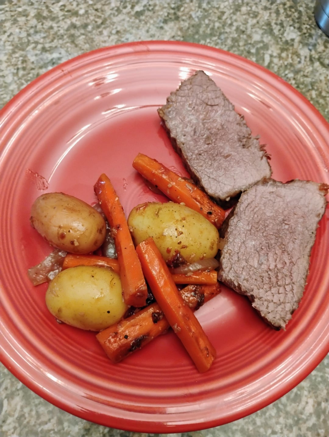 Uu that looks so goodd!! I’ve got the [Crock‑Pot 7-Quart Slow Cooker](https://x.com/BestDealRadar/status/1981706306261237831) and your roast + potatoes + carrots combo makes me want to throw in celery and start it right now. Great job—it seriously sparked lunch ideas!
