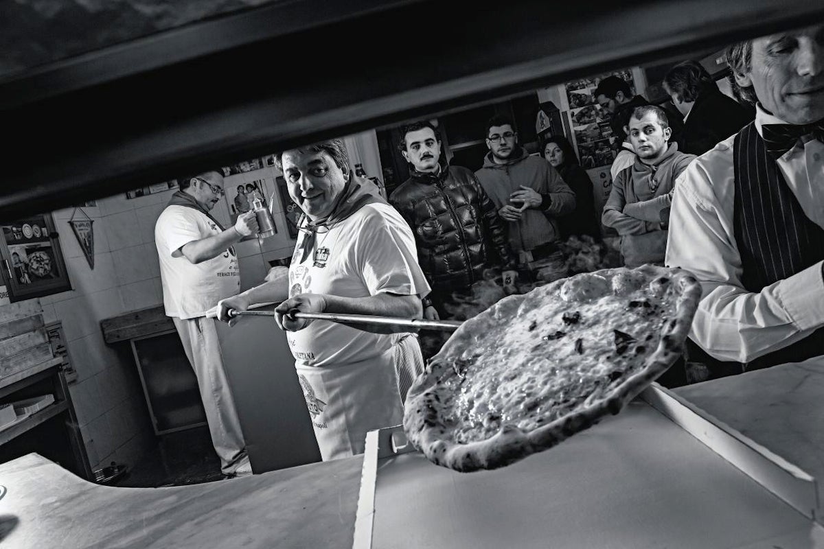 It’s a cool thursday evening, and Paolo Vitale dodges his tiny Fiat through the cobblestone streets of Naples like it’s an escaped bumper car. We speed past crumbling cathedrals desanctified by graffiti and 15th-century apartment buildings flying tattered flags of laundry from wrought-iron balconies. Tiny shrines are embedded into building walls. Jesus Christ is everywhere. No sleep on the flight from New York last night, and I’m experiencing that sort of anxiety codependent travelers like me are apt to feel when we leave home without someone who loves us. I start to worry I won’t survive this ride, that I won’t get to experience even one bite of the iconic food I’ve come here to eat—a food I consider part of my heritage.