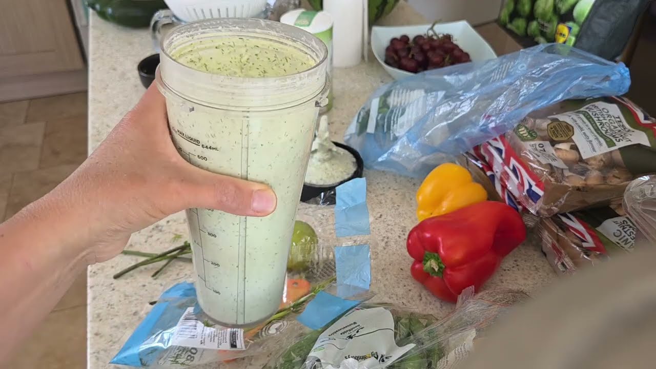 Hello everyone and welcome to Raw Vegan reality show. My name is Nicole and today I would like to share with you um my version of a raw vegan taziki sauce. Um, it’s basically a copy of the, um, regular, you know, Greek ingredients of of the Greek recipe of the taziki sauce or dressing um, with the only difference that instead of the yogurt, uh, we’ll be using um cashew nut. Uh and in with combination um uh of the lime and lemon, it literally tastes like um yogurt. Uh my nuts um have been soaked and frozen and stored them sort of in this bag here. I just broke them down a little bit to be able to use some of them. The reason why I um freeze nuts is that um I use um Ninja Blender instead of the uh Vitamix. So, uh it doesn’t um it’s not as powerful as Ninja Blender. So, it really helps to have nuts nice and cold and uh obviously pre-oaked prior to being frozen. Uh it gives a much smoother finish. Um and also I don’t need to worry about using them all up in on the same day of soaking or keeping it in the fridge for just about two days. Um, I did that before and I found that they went off really fast. You know, they were going bad, the nuts. And, um, now I just, uh, freeze them. I I’ve never heard of this trick. I just thought of it probably on the second year of me being raw vegan after um, losing so many soaked nuts. Um, you know, oopsie. Um, to going, you know, bad. So, I’m very happy. I thought of it because you know now it’s it’s just really convenient as long as you have a freezer that is. So what I’m I’ll be doing is that I’m going to be putting some um cashew nuts in the blender. I don’t measure anything. I just um put it put approximate amount. I mean you can’t really go wrong with that. Um I think that should be enough. Um, so next I will be um grating my um cucumber. So I washed the cucumber. I chopped the end bits off. It’s organic cucumber. I do know that they put some organic whatever they call it natural wax on it. I’m not too keen on consuming it, but It’s the only recipe that I keep the skin on and the cucumber because it keeps cucumber from going too limp in the sauce. So, you can um sort of wash it well, soak it and then maybe rub it with some kitchen roll or um just a cloth to get rid of as much wax as you can or maybe soak it with some vinegar and baking soda. But I I I I really just wash it and um wipe it really hard to get get rid of as much wax as I can really. So next we’ll be just grating the cucumber on a large grater, the largest hole you have. Uh and then I suspended the colander over the jug. so that it catches all the juice. Um, we will be putting some water into this beaker later. But what I do is I um grate the cucumber, then I salt it slightly. That helps some juice to come out. So I substitute the water I would be putting in here with some um cucumber juice. So that it’s not too watery. So the end end result sort of yogurty um you know substance is not too watery otherwise it’s not very enjoyable to eat it when it’s too sort of liquid. So what I do I just get rid of all the cucumber I can get back into there. don’t want to waste any cucumber shavings. I just really don’t like wasting food. So, I try to get as much in as I can. That should be enough. I would normally wash this straight away, but for the purpose of the video, I’ll just put it in the sink. So, now I’ve got some I’ve got some um Vogus um salt and it’s a mixture of sea salt, vegetables and herbs which are celery, leak, crass, onion, chives, parsley, uh lavage, not sure what that means, a garlic, basil, margarm, rosemary and thyme, and a bit of kelp. even certified organic free from MSGs, gluten, lactose, milk, protein, additives, and preservatives. So, that’s been my go-to salt for quite a while, apart from when I make something sweet. And then I just use um coarse sea salt. I did used to use a lot of Himalayan salt um back in the day before I became raw vegan. But then I I do know salt I I believe salt is not good for you. Full stop. I believe that ultimately one should avoid using salt. But I just think it gives so much flavor to food. And maybe eventually when I have been raw vegan for more years and um I I already feel that I’m slowly starting to lean towards eating much more fruit than anything else. Uh but at the moment when I have maybe a salad, I I just feel like I need a bit of salt. So what I do, I I use obviously this is not just salt, it’s salt mostly, but with some extra. So it’s already less percentage of it. But I use it sparingly. So I just put a bit of salt through this little holes. And I just let it sit for a minute. And as you can see, it’s already releasing some juice in there. I can really even sort of mix it up a bit so the water comes out quicker. Oopsie. Don’t want that here. And um just do that. and leave it. Okay, now we have cashews here. Frozen cashews. Still hot cold, I believe. Um, I’m using a lot of garlic. A lot. I I love garlic. I obviously because you don’t use the whole I have massive salads with this. So, uh, you know, I have um I make um sort of zucchini noodles. I put loads of green leaves, loads of tomatoes. Sometimes I put maybe some unpasteurized olives or if I I just realized that my camera went dead, so I wasn’t filming for quite a while. Well, for a couple of minutes. Um I was trying to say that sometimes I use unpasteurized olives and sometimes I use um when I feel like having um maybe something fermented uh I’ll use some girkins or I’ll use maybe some kimchi or sauerkraut that I make um just sort of sprinkle around but most of the time it’s probably olives and um gerkins like few thin slices or maybe none of it. Um, sometimes I could put a few of the um dehydrated um well marinated and dehydrated mushrooms on top or just raw mushrooms just for a bit of meaty meaty fl you know texture. So whilst I was thinking I was filming but I wasn’t. I added some um lime, a lime, a who