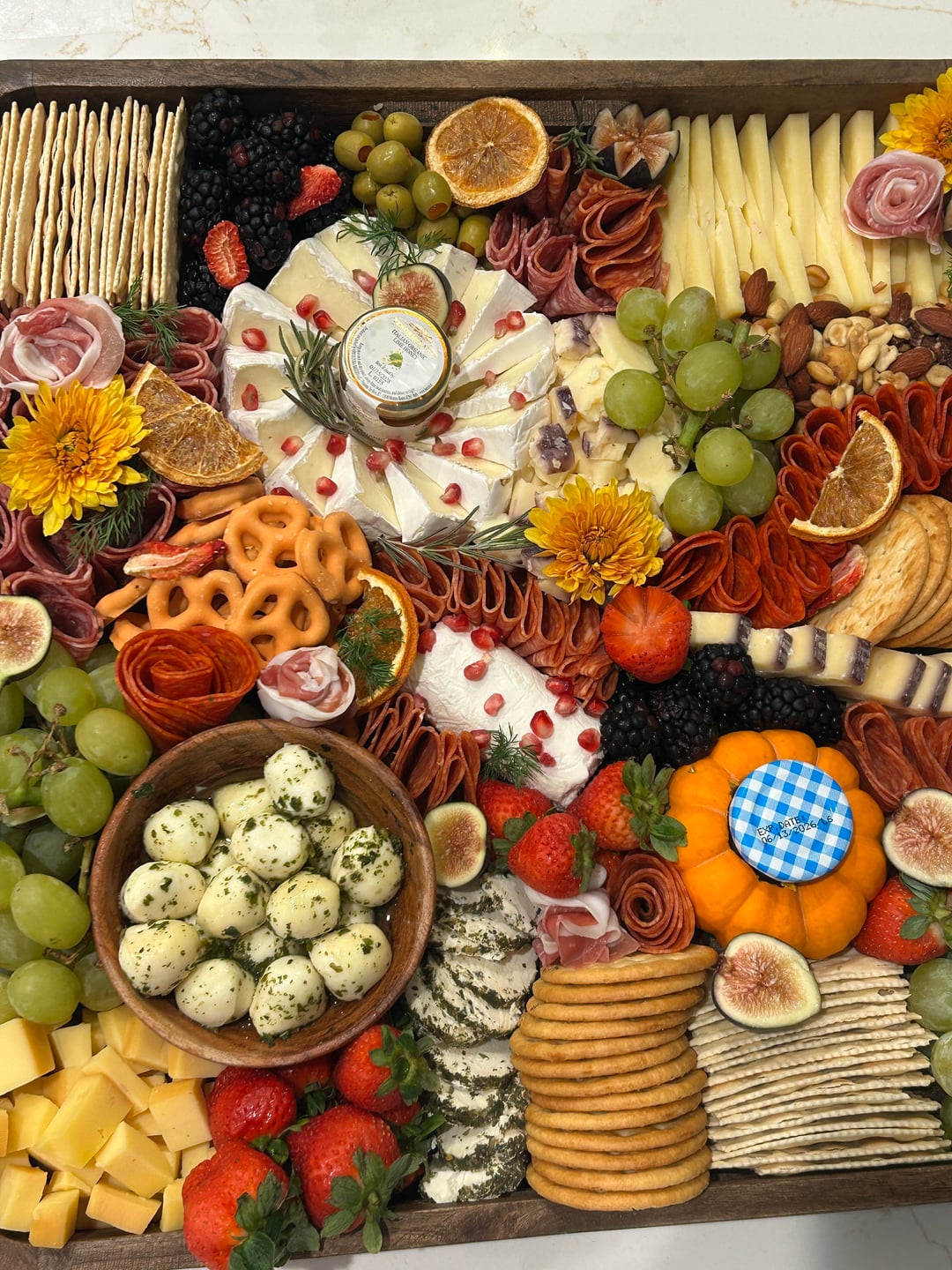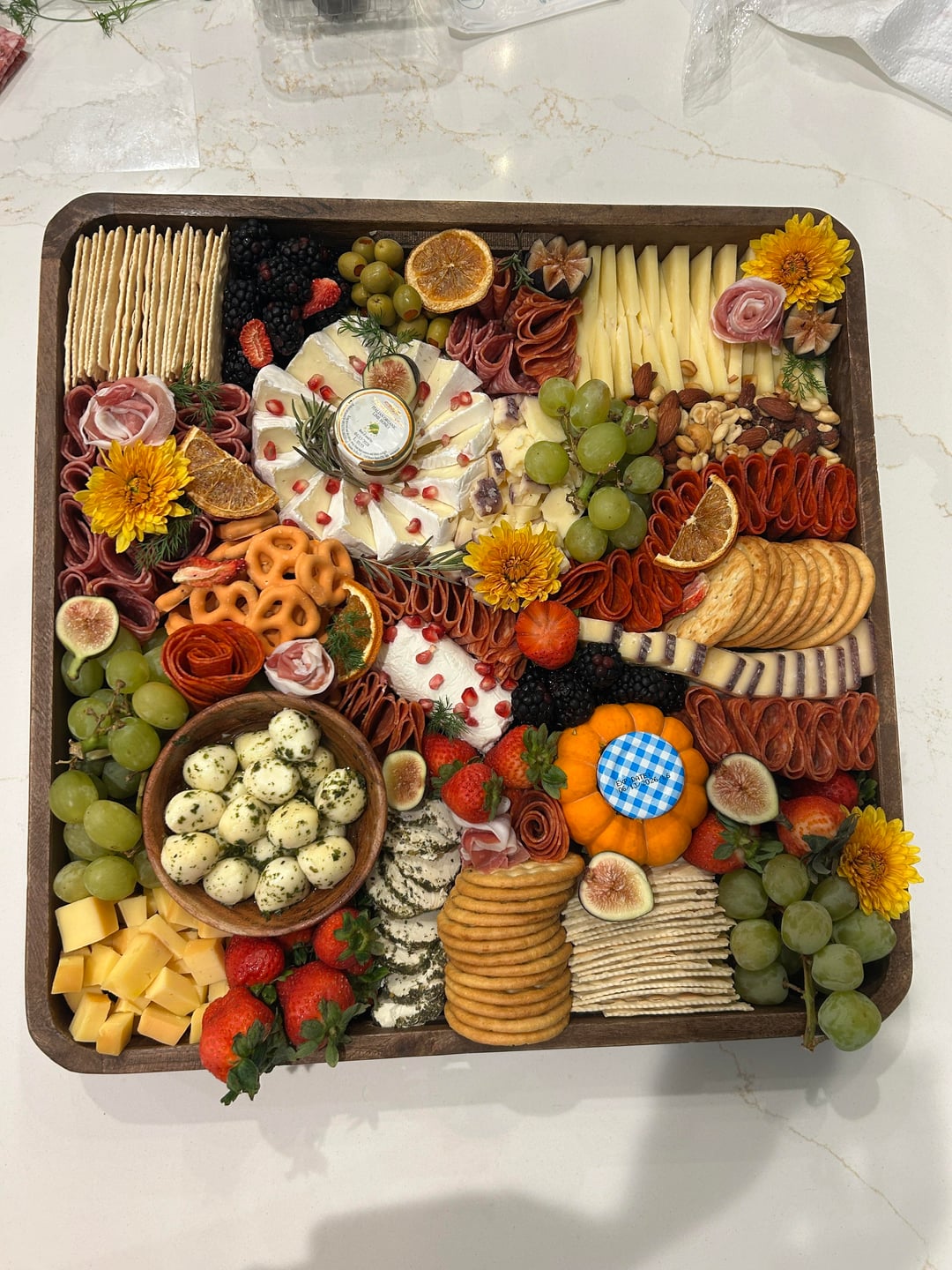 My latest charcuterie board, I tried to take some advice from my last post by incorporating more colors and being more mindful of what items I put next to each other. Always open to more feedback!