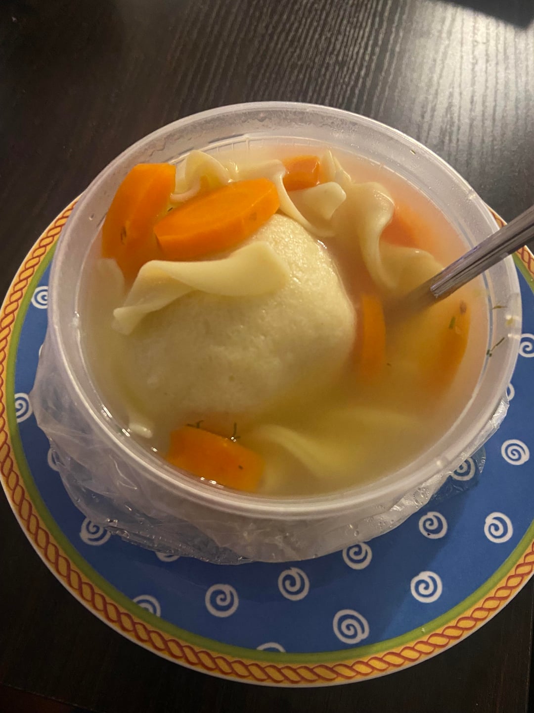 At home, I warmed up the soup and was pleasantly surprised by how light the broth was. Certainly perfect for anyone not feeling well, but it was welcome by me even though I was expecting something more salty. The matzo ball was very fine in texture, and the carrots and noodles had just enough bite to be fresh but not distracting. Might be the best matzo ball soup I’ve ever had.