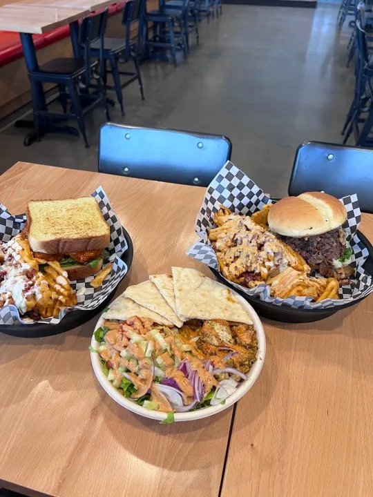 Urban Gyros, located on one side of the building, serves Mediterranean food, while Slap Burger, located on the other side of the building, provides comfort food. The spots are located at 1550 N Zaragoza.