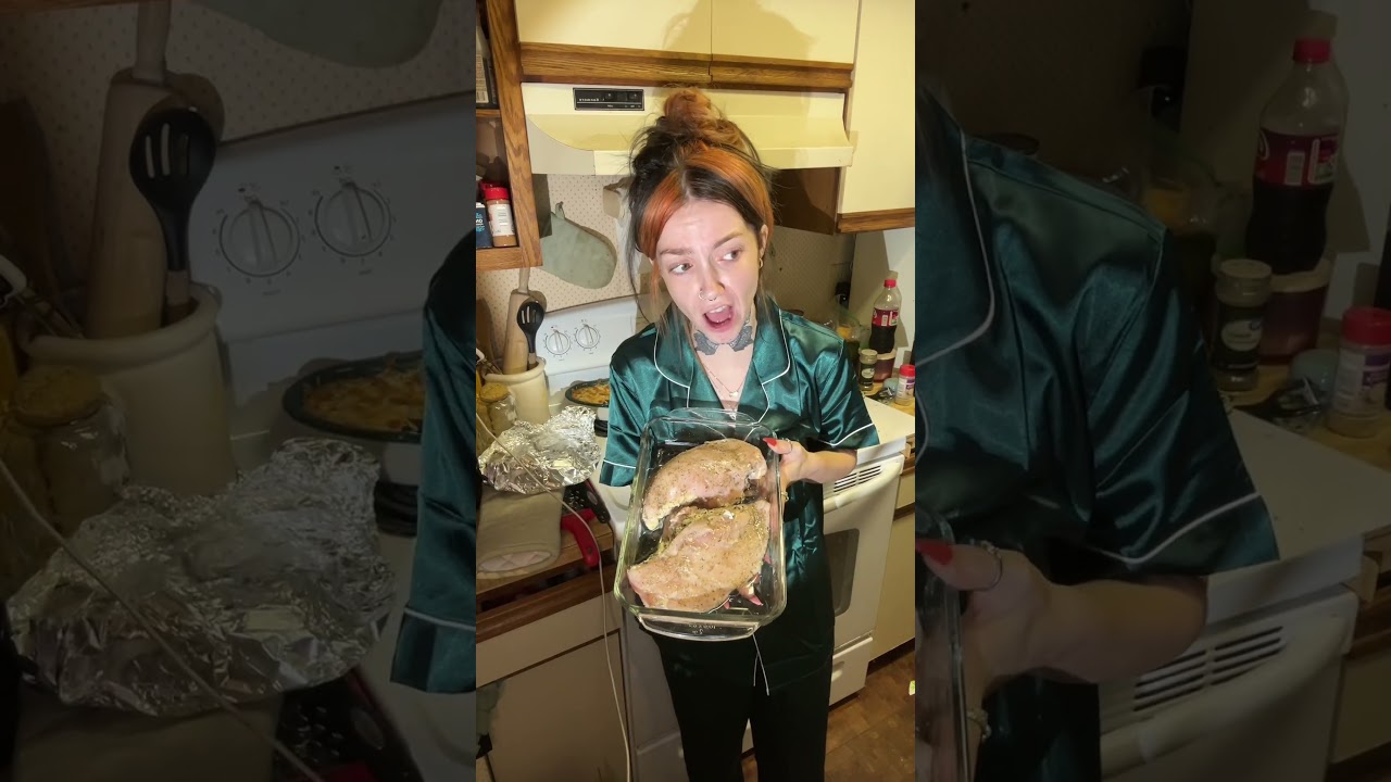 Go get big, [ __ ] We’re making spinach artichoke stuffed chicken and mashed potatoes. Get a pot and fill it with some [ __ ] water. Now get your potatoes and skin them. Or don’t, but cut them up and put them in the water so they can [ __ ] boil, [ __ ] Once your potatoes are on the stove, get out two pieces of chicken and preheat your oven to 375, [ __ ] Then season your [ __ ] chicken on both sides. I use onion powder and Italian seasoning. Now get out your [ __ ] spinach artich choke dip. If you didn’t watch me make this, you have to go back and watch me make this. Now cut your titty in half and slap it with some dip and then close it. [ __ ] you make like a little pocket like that. Take your pocket and take your dip and put it in there. And now you have spinach art stuff chicken. Put it in an oven safe dish, [ __ ] Once you got your chicken in your [ __ ] dish, [ __ ] pour a little [ __ ] olive oil over it or any other oil you got so it doesn’t [ __ ] burn or stick to the damn pan. Now, bake your chicken at 375 for like, oh, no, 40 minutes, I think. Correct me if I’m wrong. Hey, if you like my pajamas, I linked them. They’re really soft and silky, and they come in a bunch of different colors. When your potatoes are done boiling, drain them. Once they’re drained, add your mumu titty milk, butter, sour cream, cream cheese, and chives, and your other seasonings. Your other seasonings include salt, black pepper, garlic, and cheddar cheese, [ __ ] And when your mashed potatoes are done, put your burner on low and put the lid on so your mashed potatoes stay warm. Hey, take your [ __ ] chicken out the oven and then make your plate. That’s what my food look like. Okay, I’m going to go eat my dinner now. The mashed potatoes are bomb. There’s cheese in them, man. That’s what my chicken look like. Really [ __ ] good. Follow along for more big baking. Bye, [ __ ]