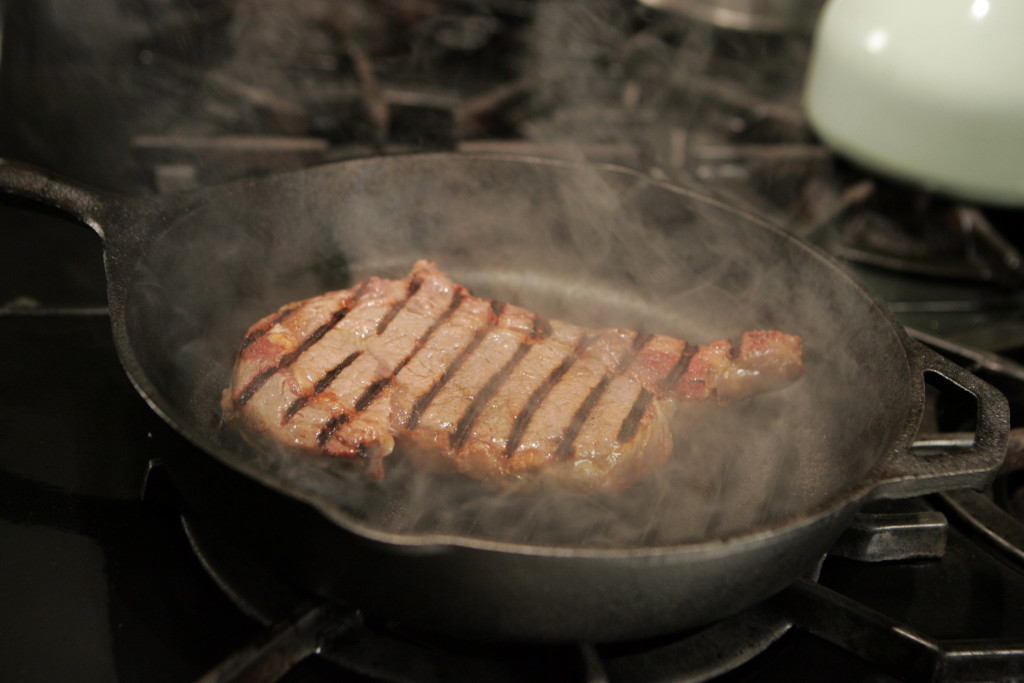 1. If time allows remove steaks from packaging, dry with paper towels, put on a plate and refrigerate a day or two. If not, wrap in paper towels and set on counter about 30 minutes. (If you’re really in a hurry, just proceed.)