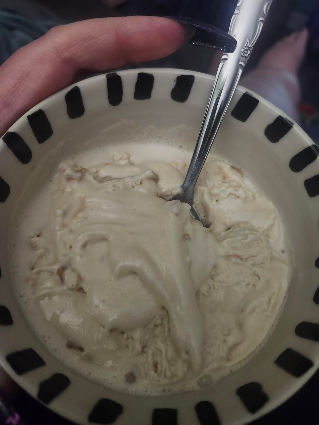 Very tasty but won't freeze solid, second photo is 1-2 minutes after scooping. It's almost like soft serve, starts melting immediately. The carton was mushy fresh out of the Publix freezer, and everything else is perfectly frozen in mine. Wondering if it's a fluke or it's meant to be this way since it's not mentioned in the description. Has anyone else tried it?