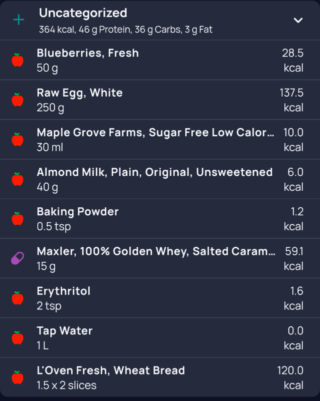 I'll have 15g of protein powder mixed with a bit of water to form a thin drizzle on top, and may or may not add a bit more Maple Grove SF Syrup, depending on how sweet I want it. You can obviously mix it up with different flavors of protein as well.