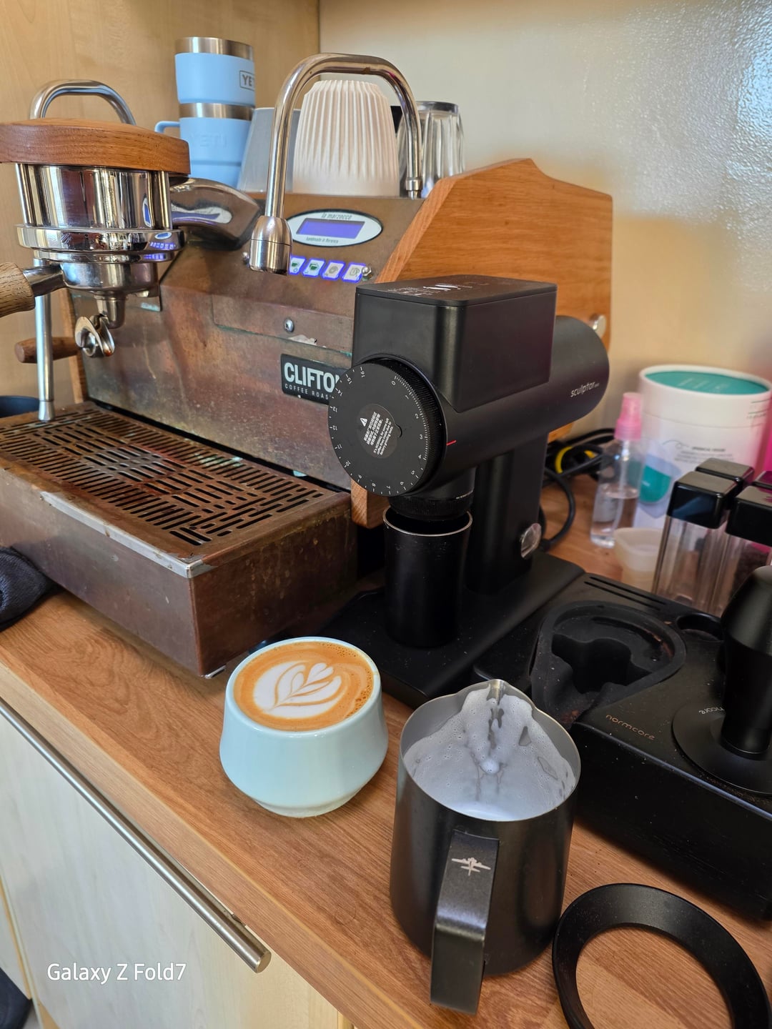 A cortado for me, my latte art is never consistent and its annoying , but today it was a bit better .