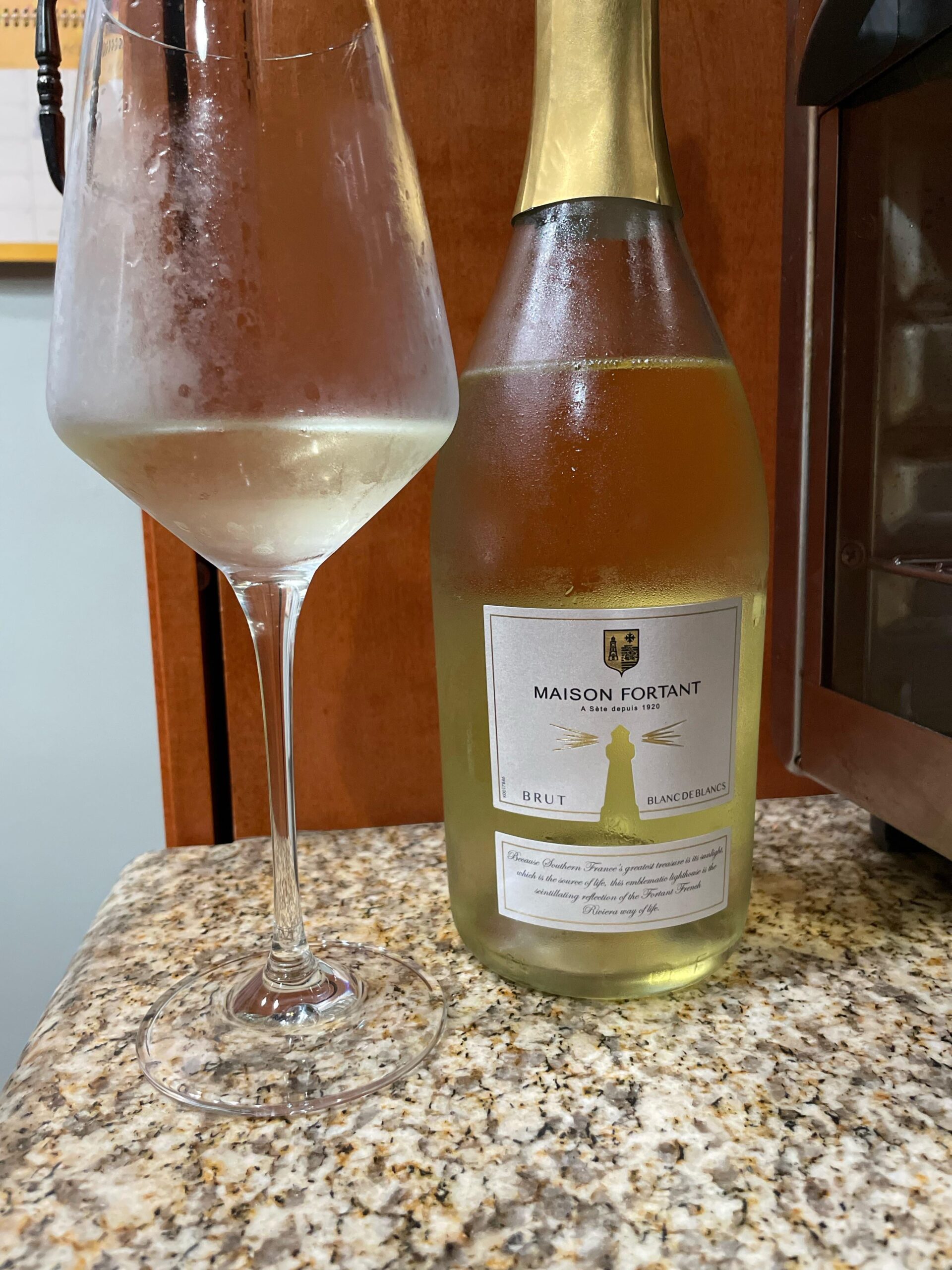 Tonight I’m sipping on some Maison Fortant Blanc de Blancs Brut, non-vintage from the Languedoc. Found this delicious sparkler for $10 at Grocery Outlet here in LA.