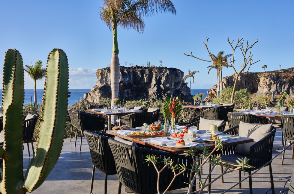 Nestled at the other side of the resort’s purpose-built volcanic cave, emulating its history, the restaurant’s terrace is the perfect spot to catch the waves of the Atlantic and the sun setting over neighbouring island La Gomera, creating a relaxing, all-purpose setting – whether a romantic date night, or a catch-up with friends.