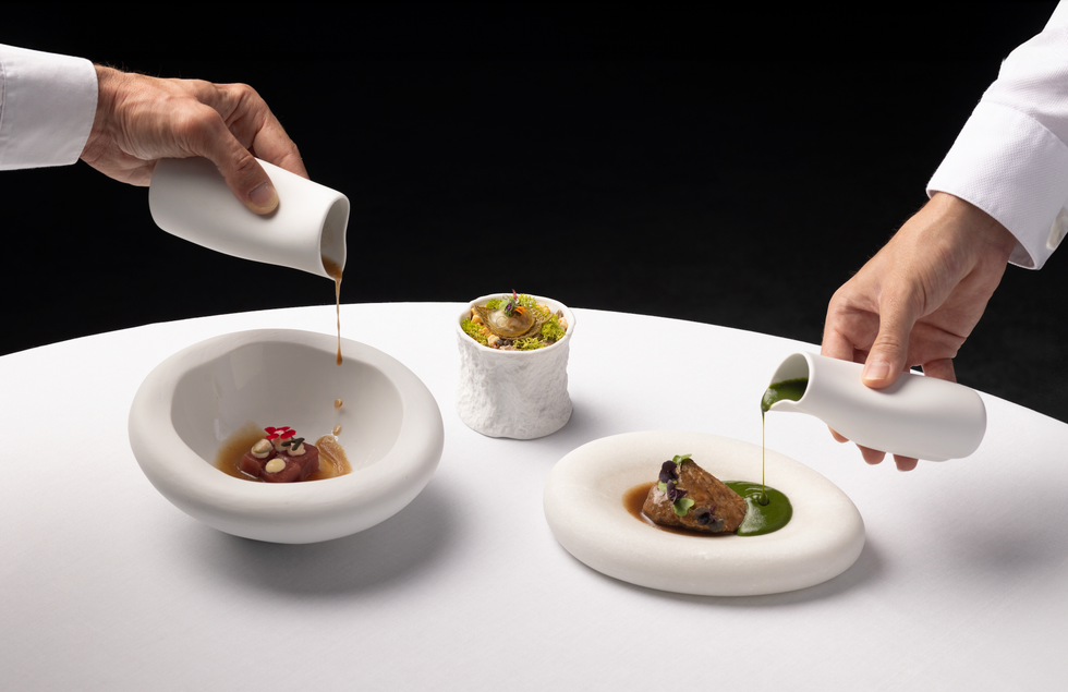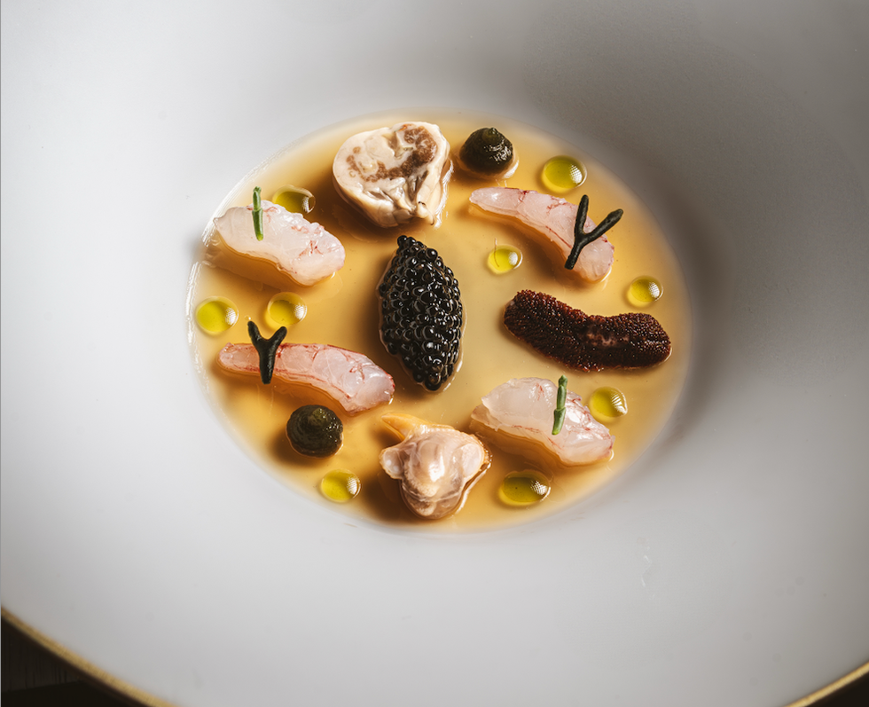 Highlight dishes included ‘Carbonara 3.0’ – a liquid carbonara ravioli on pecorino cream, crispy guanciale, pork crackling and cured yolk; royal pelibuey lamb with Jerusalem artichoke purée, and ‘Tribute to Tuna’ – mock ravioli with tuna belly, caviar and bergamot.