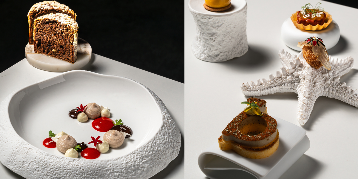 Highlight dishes included ‘Carbonara 3.0’ – a liquid carbonara ravioli on pecorino cream, crispy guanciale, pork crackling and cured yolk; royal pelibuey lamb with Jerusalem artichoke purée, and ‘Tribute to Tuna’ – mock ravioli with tuna belly, caviar and bergamot.