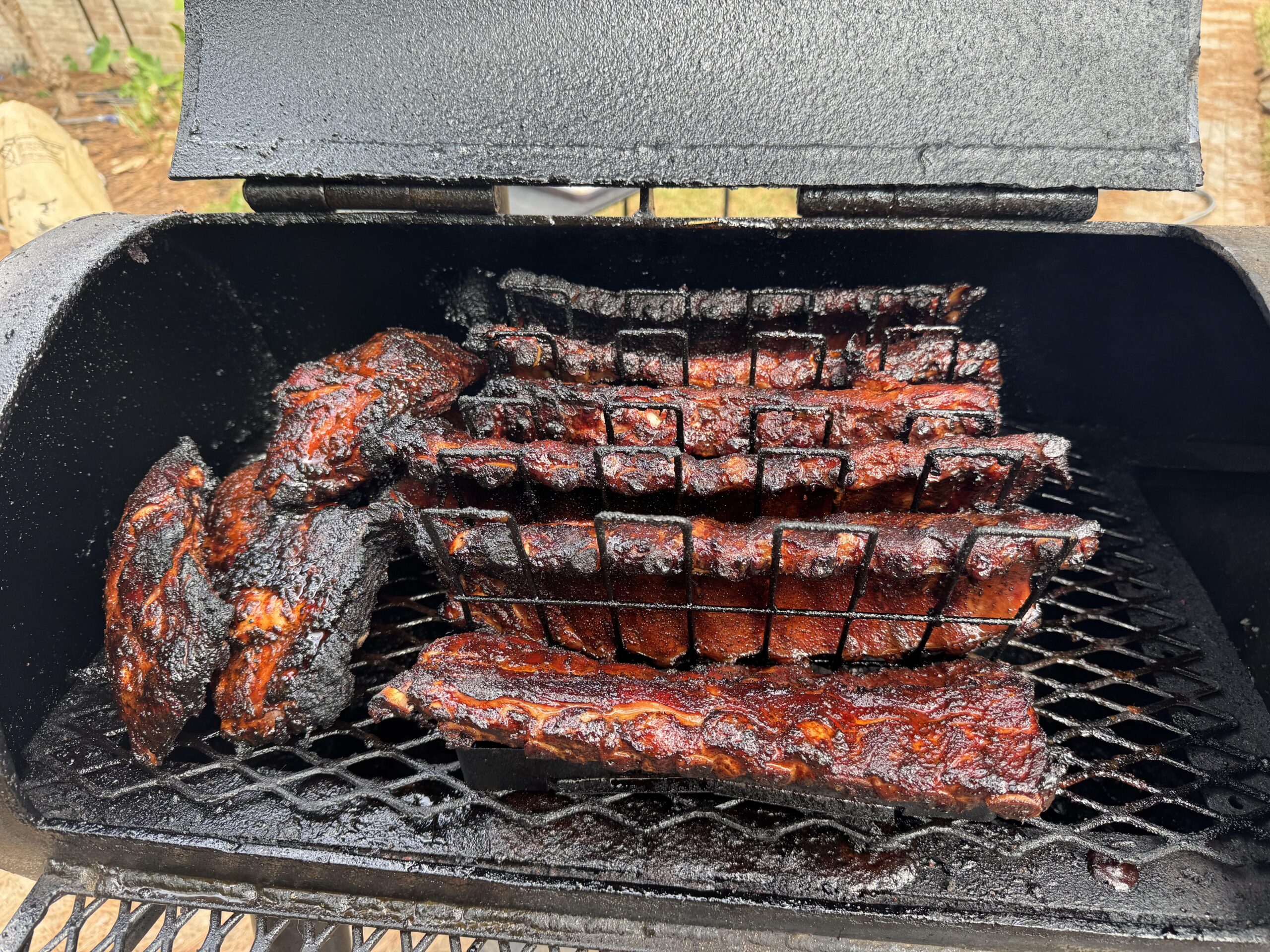 Ribs on a smoker I built in 2003….dry rub, concentrated apple juice mop by Natural-Most8338 Dining and Cooking