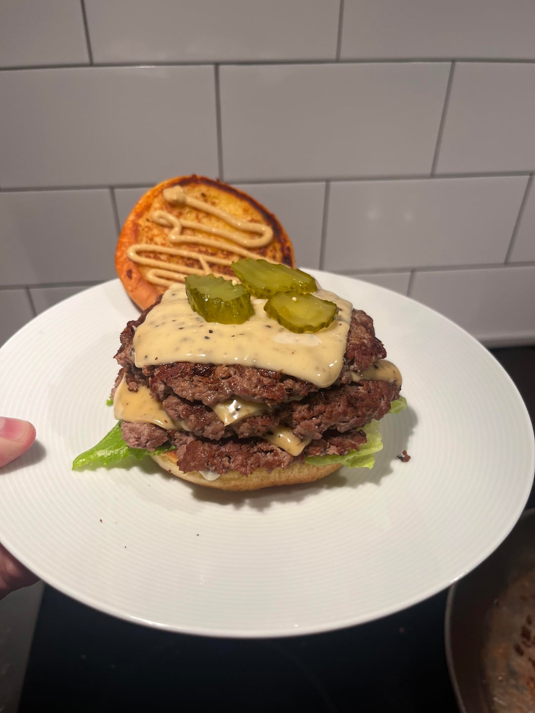 [homemade] triple cheeseburger