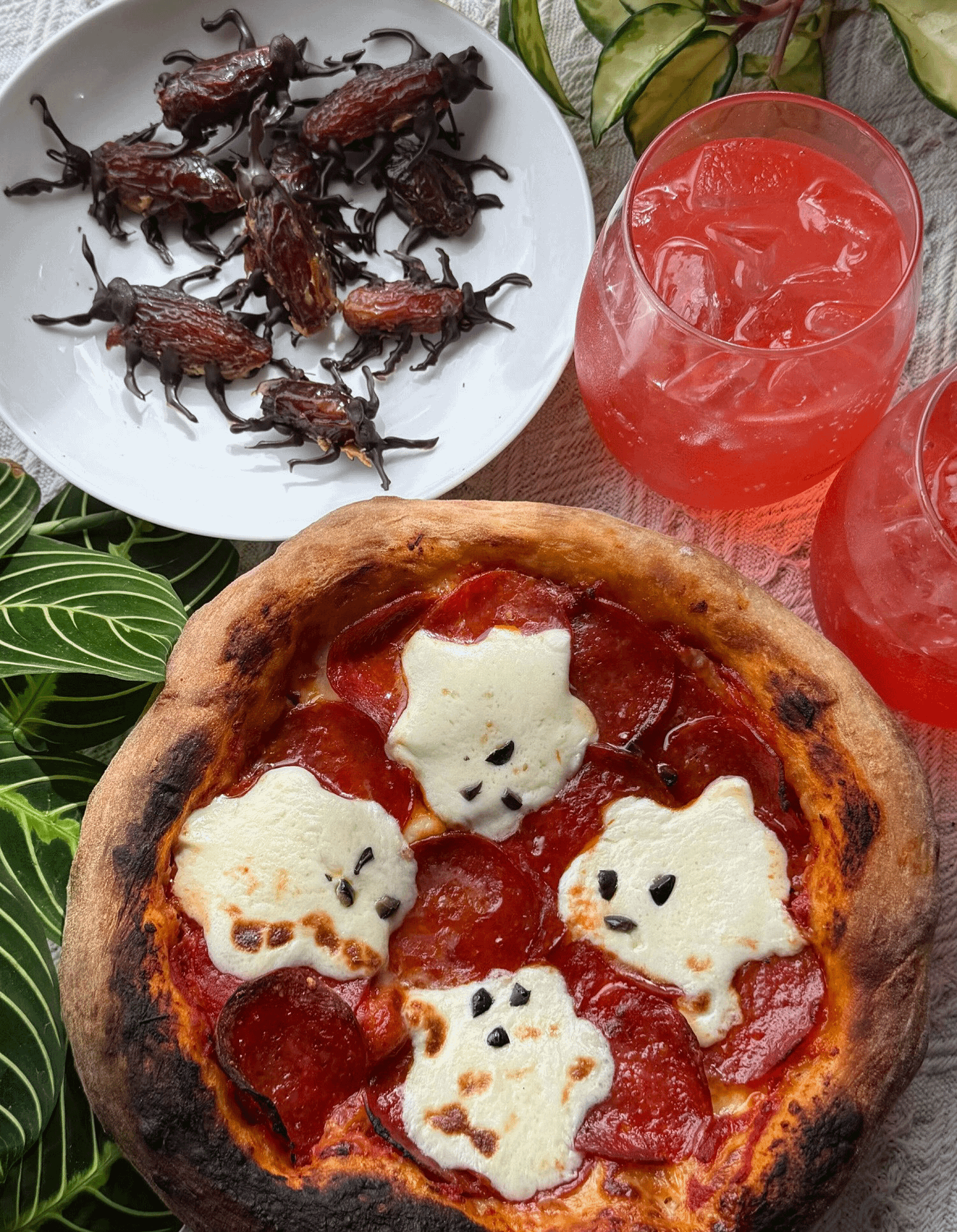 The only reason I knew those weren’t real bugs is because the ghosts on the pizza have away that this is a Halloween thing lol. (Then I zoomed in to see dates and chocolate). Well done!