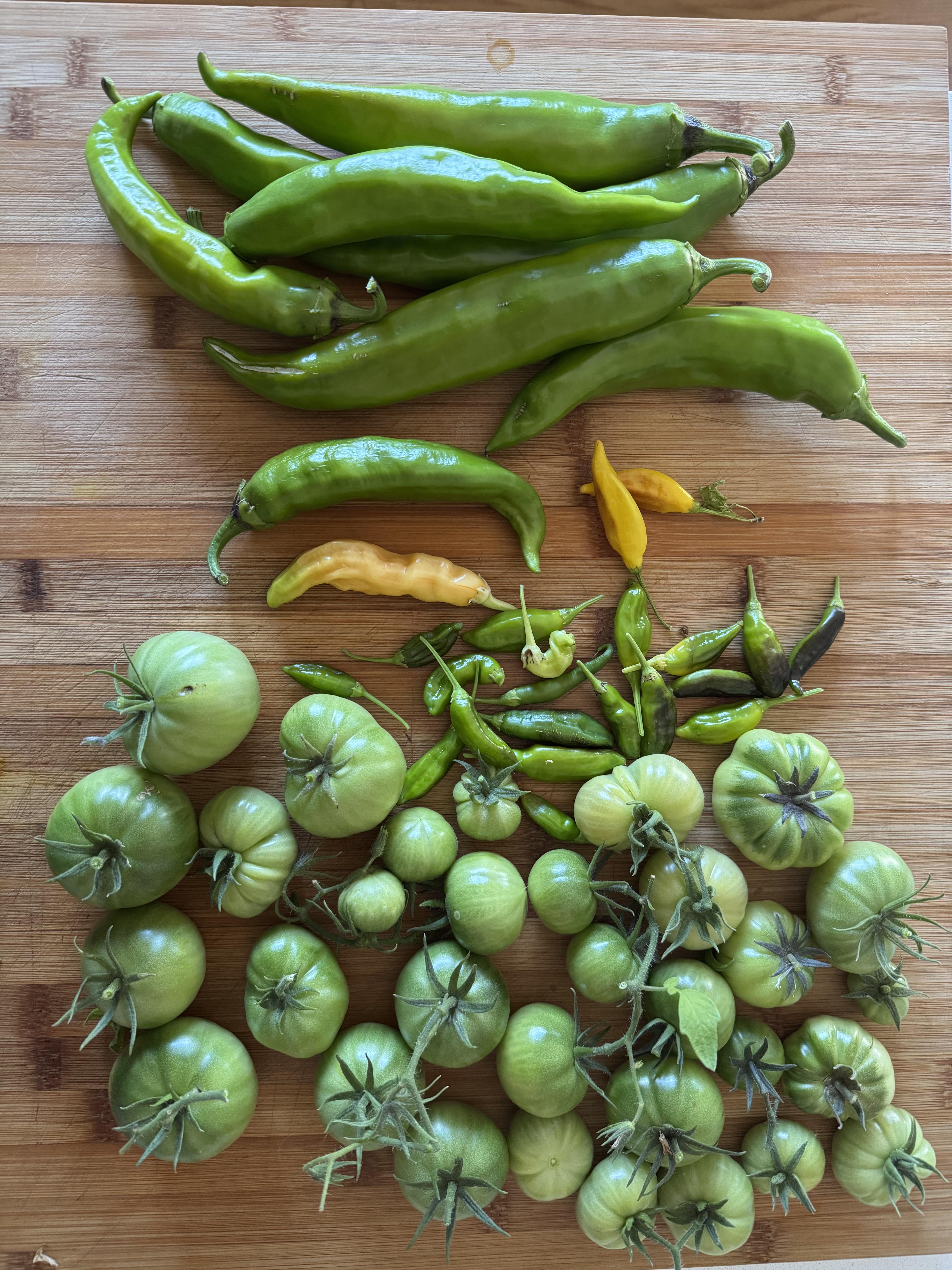 Times up. What can I make with this? by jwindhall 6 Comments Radiant-fit 5 months ago A great salsa, there are green tomato recipes you could find avocadoflatz 5 months ago Pretend the green tomatoes are tomatillos and get to making salsa verde purpleppleateranon 5 months ago Fried green tomatoes! We made them in our air fryer.. delicious! SixLeg5 5 months ago Refrigerator green tomato pickles. So tart and crisp! StreetSyllabub1969 5 months ago I’m thinking of a Green Chili if you stew the tomatoes, and saute the peppers with some onions. I would probably add beans (black? pinto?) as well. BetsyMarks 5 months ago Fermented tomato pickles! Easy and delicious. Google recipe