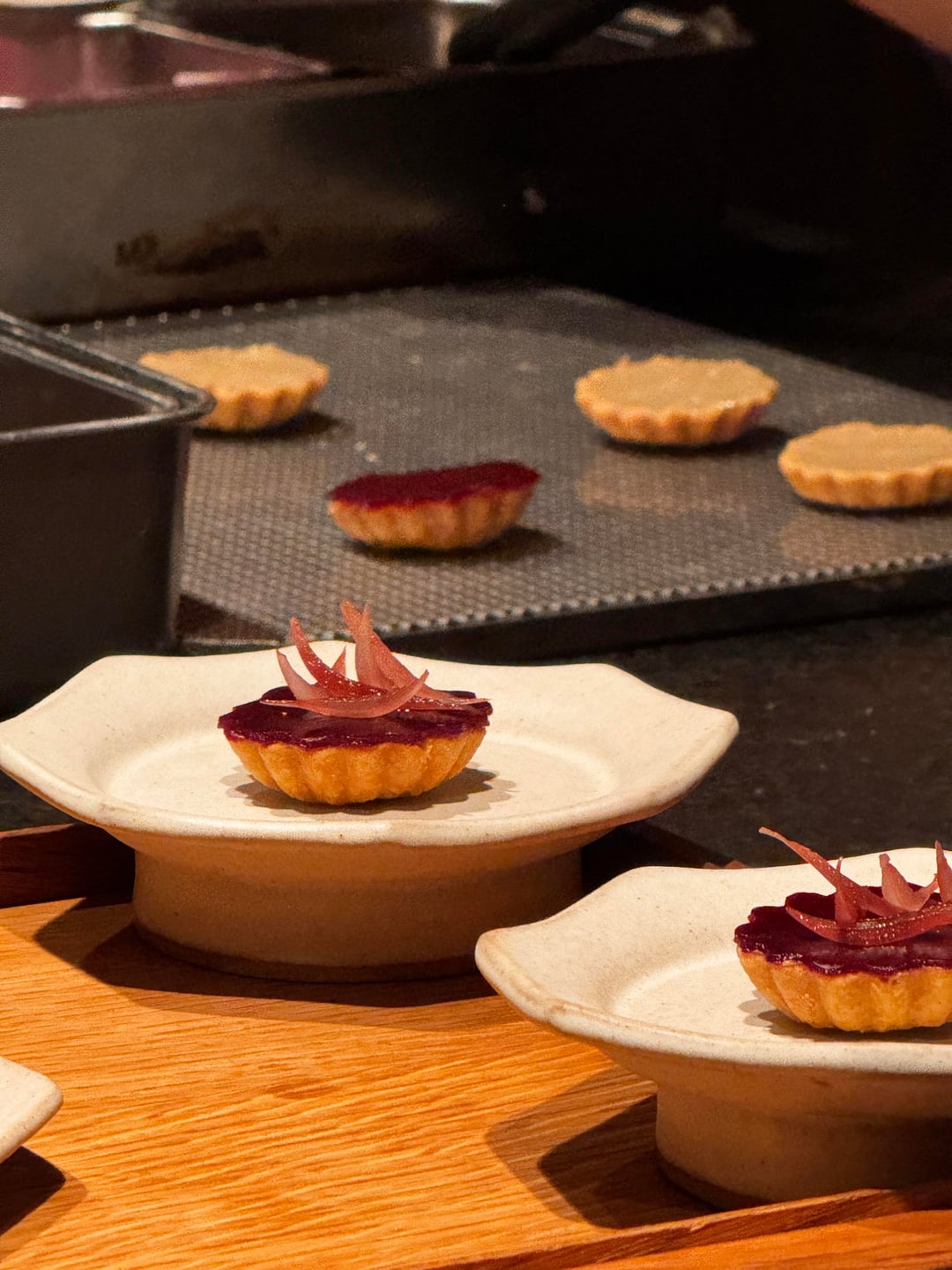 – The pumpkin "creme brulee" was top notch – creamy, salty, acidic….so so good. The lamb tart with blackcurrant and onion was a star and we loved that their bread course involved caramelised onions. The tomato and roe course was really hard to top – so playful and powerful at the same time.