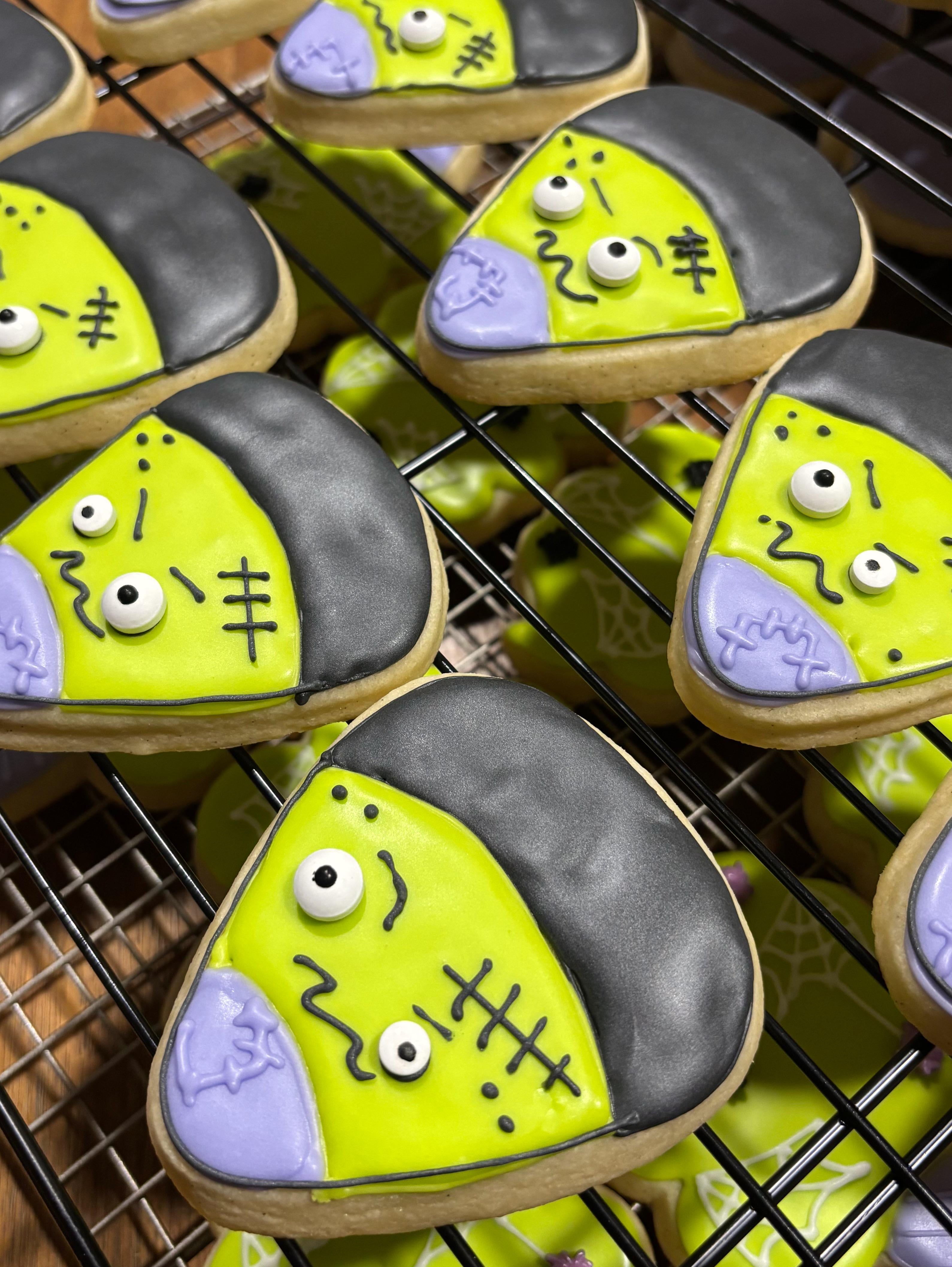 First post! I’m a beginner and I’m starting to figure out icing consistency. I was planning to flood these in white and then paint them to look like candy corn. When I ran out of white on another cookie design I decided to get creative 😂