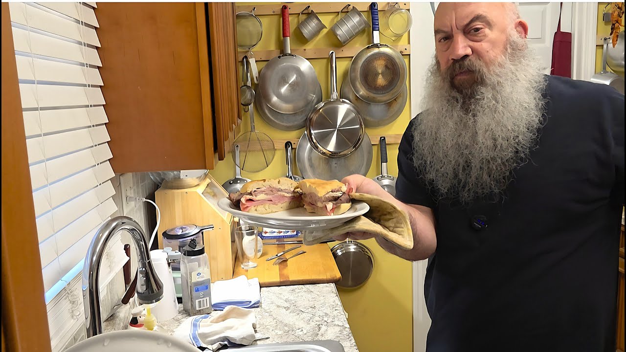 All right. Nothing fancy today. Just a sandwich. Uh what I’m going to do. I got some chabatada buns or bread, whatever. I’m going to toast that. And uh I got roast beef and ham. And I’m going to fry the ham for just a couple of minutes in a frying pan. And then I’m going to put it all in a toaster oven. Melt it. And then I got usually I make homemade horseradish, you know, dressing or sauce. But I got this Inglehoffer, which is really, really good. All right. I fried up some ham and dried it cuz usually when you fry ham like that, it gets a little wet and I don’t want my sandwich wet. So here’s some ham. I just basically just browned it. And I left these sit in the toaster cuz remember when you whenever we toast the bread, we always stand it up uh because if you and let it cool cuz if you put it on a cold plate, it’ll condensate and then you end up with mushy bread and that’s no good. All right, so put the ham on there. And again, this is just a simple sandwich. Just to give you an idea if you’re stuck for a lunch, you don’t know what you want. Maybe this will give you a sandwich inspiration or something. And then slice of Swiss. And then on the other piece of bread is going to be some I got some uh Boris Head London broil roast beef which I like a lot. That’ll go on this side. And I’m not going to put the horseradish on until after I toast it. And then when I close it, the roast beef side I should be able to take off. and then smear some of that sauce on. All right, so now this will go into the toaster oven and melt the cheese. All right, the cheese is beautifully melted. Whoa, I don’t want to drop it. Plates’s probably plate’s really hot. All right, so let me flip this together. And now take that piece off. Little black pepper. And there’s that. That should be pretty darn tasty. I think it needs a beer to go with it. So, how about a Sam Adams Oktoberfest? It’s going to be hot. It’s an excellent sandwich. Easy and that goes good with it. So there you go. Just a quick sandwich.