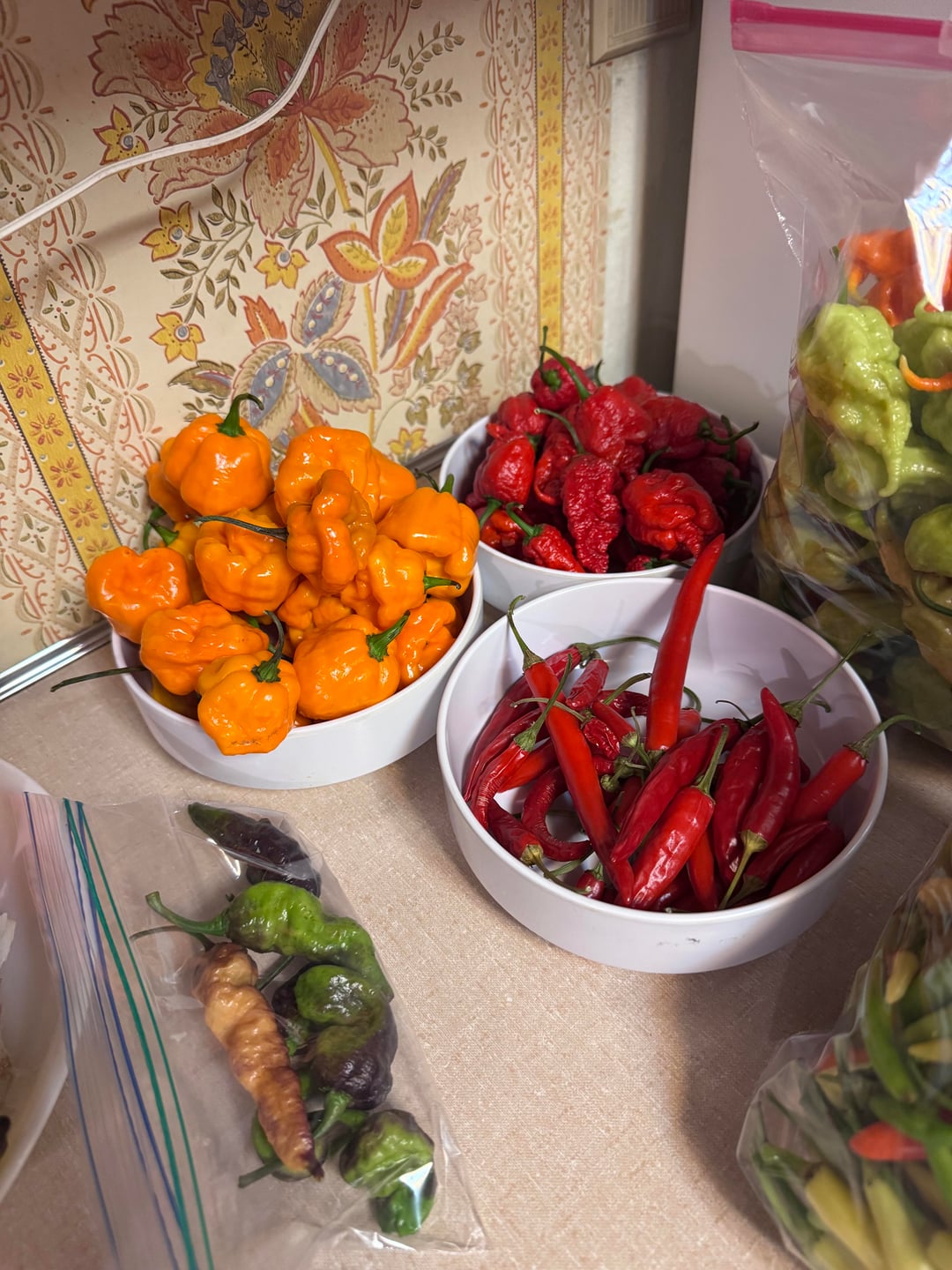 Hot Pepper Sauce. Leave the green ones on the counter for a few days. They should start to change color which increases the heat. The trick with hot peppers 🌶️ is patience.