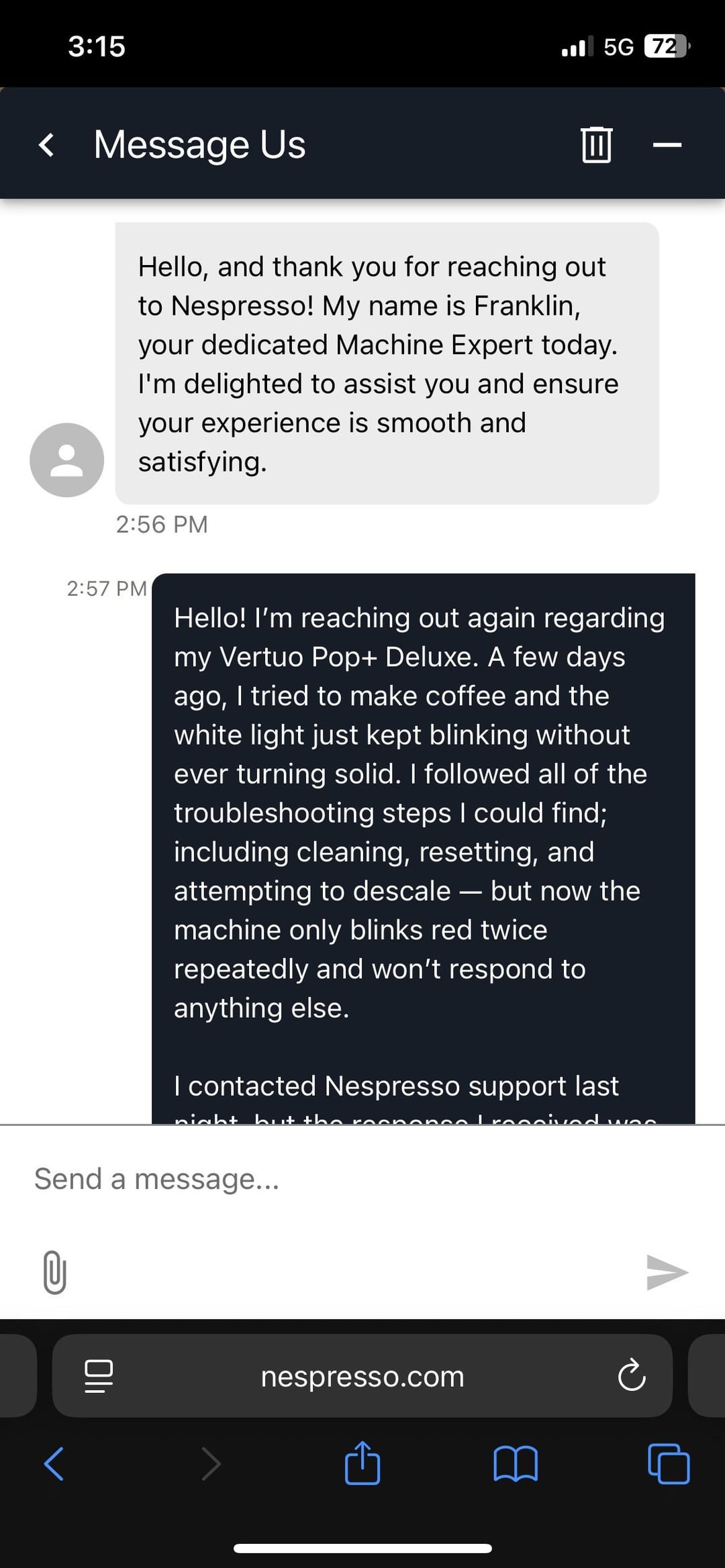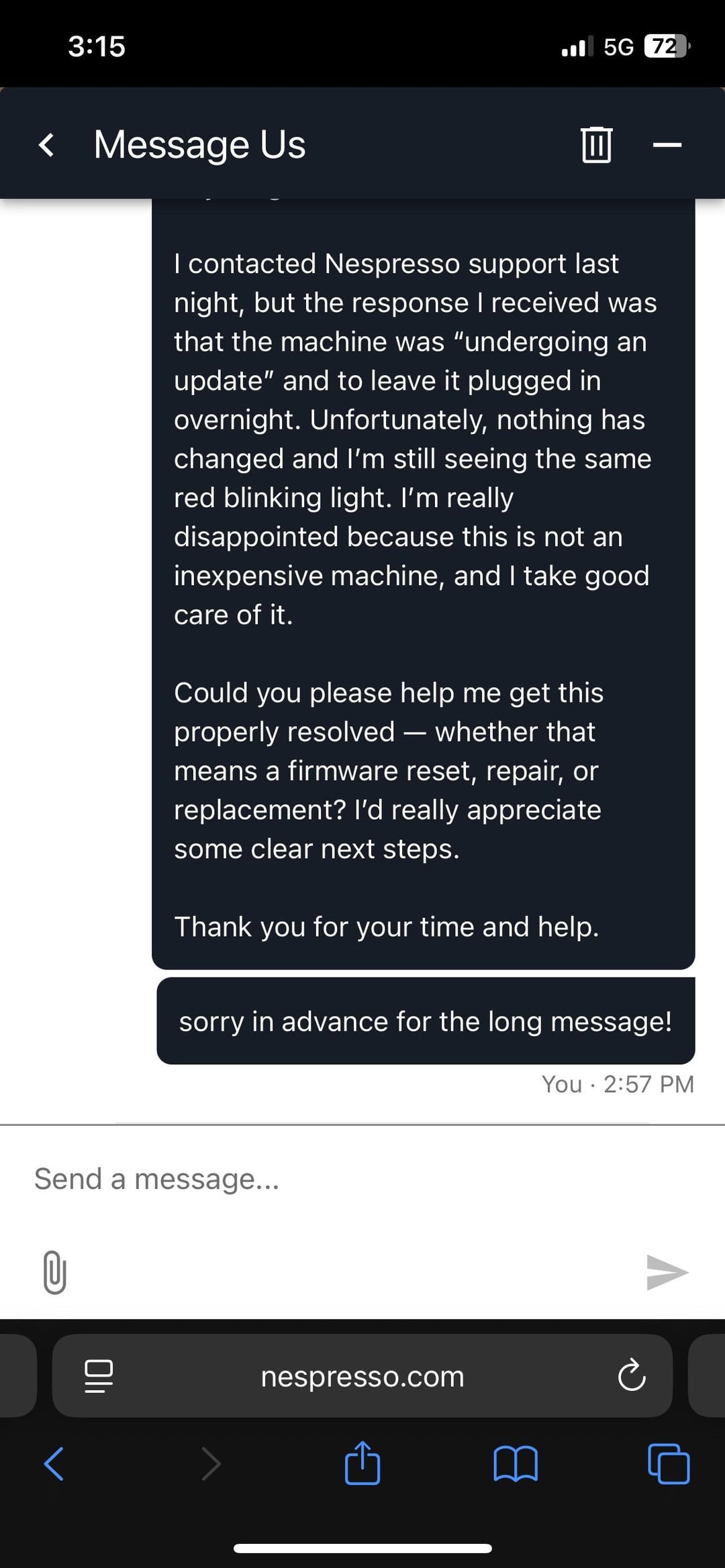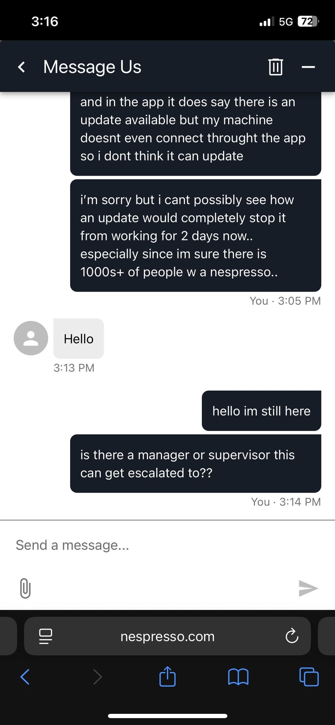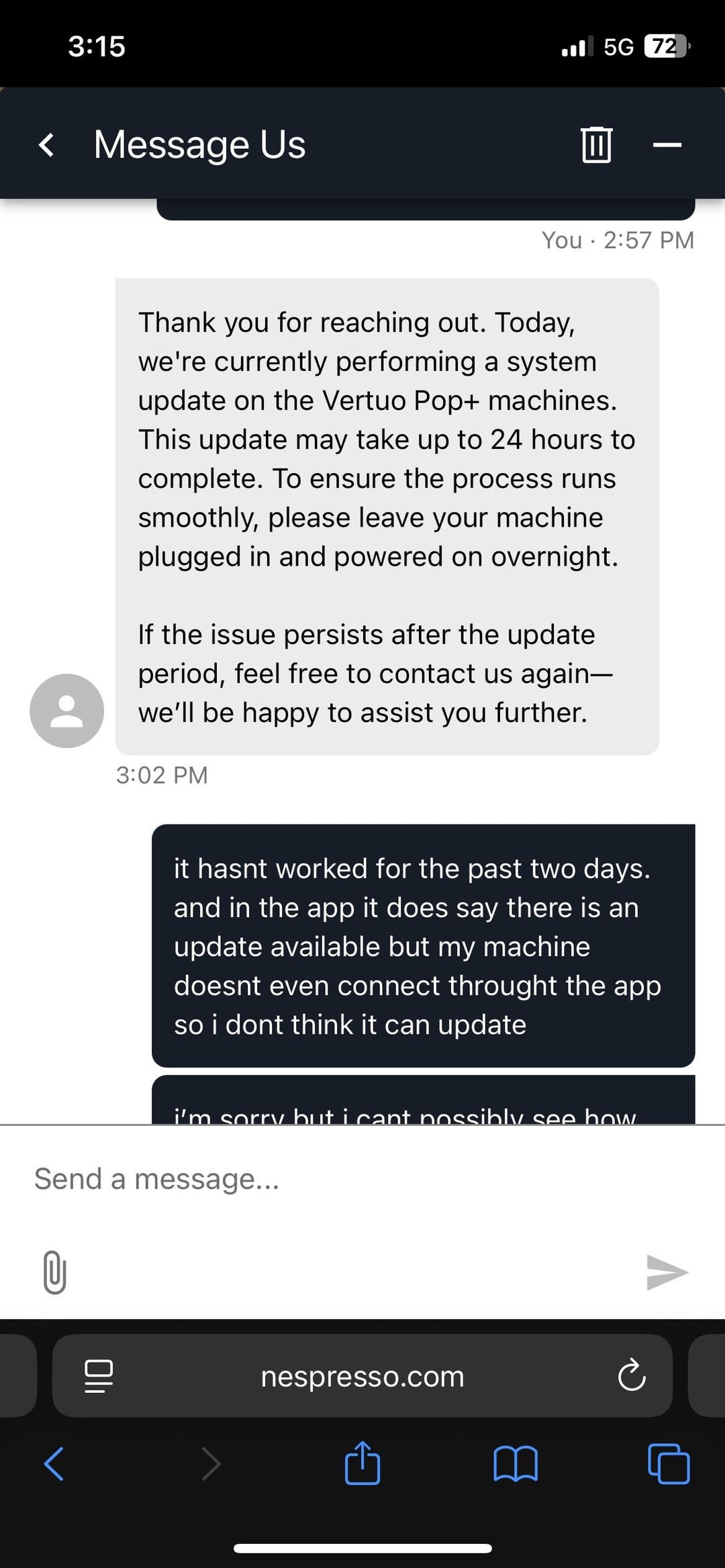 long story short my nespresso stopped working.. and this has been the response.. if anyone has experienced their machine not working from this “update” please lmk🥲 by Puzzleheaded-Wheel87 Dining and Cooking