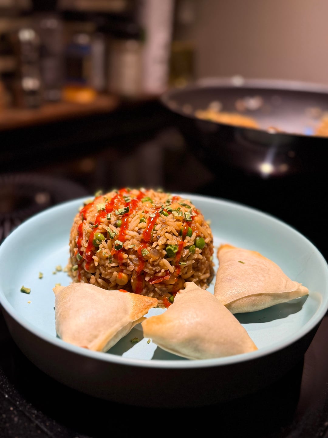 Veggie rice with samosas and SrirachaOven-baked veggies, air-fryed tofu and white beans and rosemary spreadBlueberry parfait with vanilla greek yogurt and roasted flax seedsHomemade pizza ❤️ by isa_vegchick 1 Comment Fuzzy_Welcome8348 1 month ago Everything looks amazing!