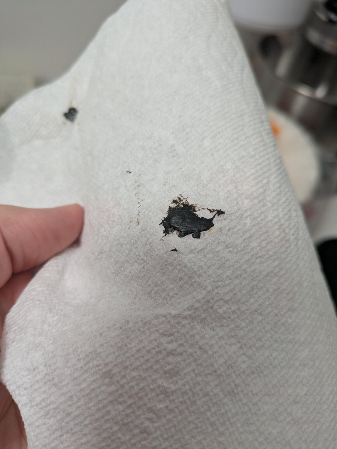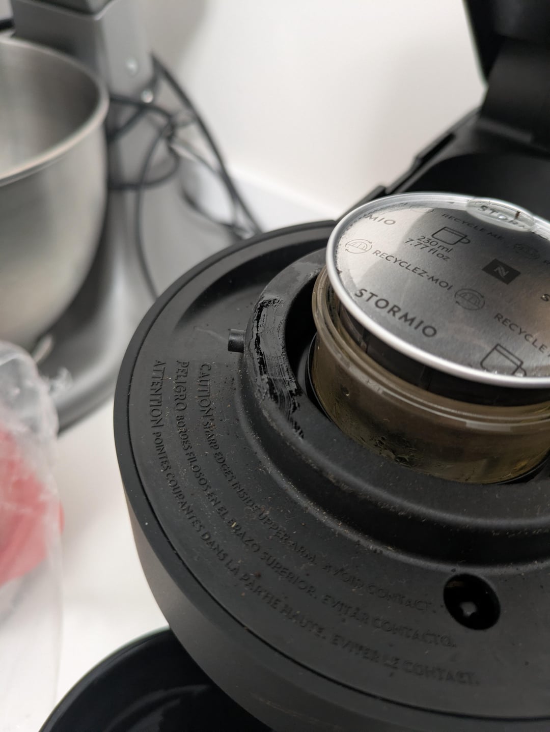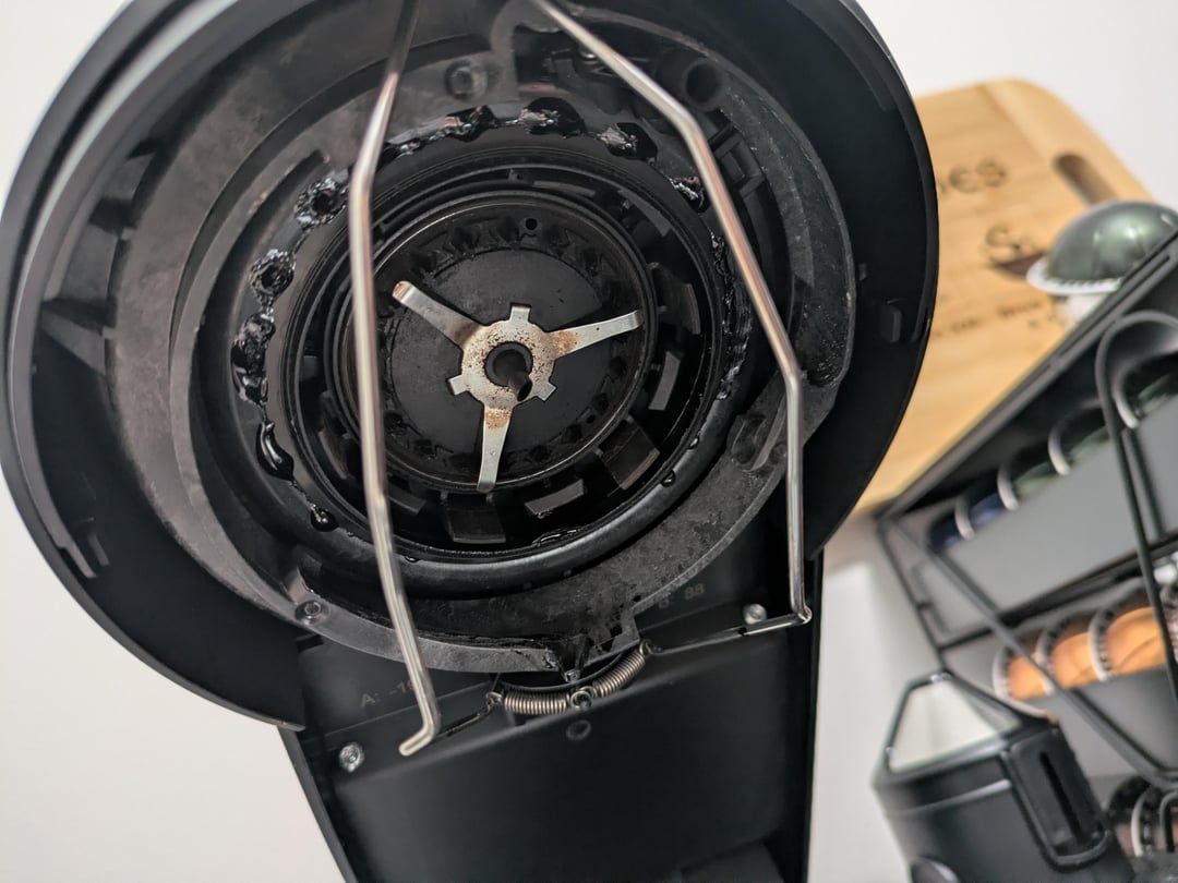 Has anyone noticed this? When I came to make coffee this morning, I noticed some black stalagmites around the pod holder rim. When I took them off, they were cold, melty/soft. Looking up inside the lid, I see some bulges around the spinny thing…