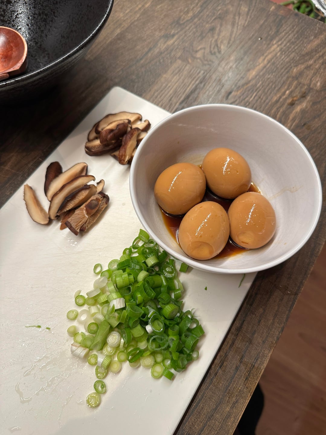 The chashu is a 2 day project as well. Cooked the day before and stored in the Chashu liquid overnight.