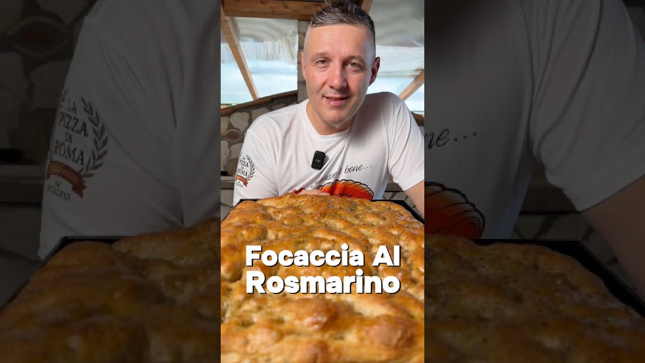 Quando la metto nel cestino del pane del mio ristorante è apprezzata da tutti e non faccio in tempo a servire l’antipasto che finisce subito. Sto parlando della mia focaccia a rosmarino. Vieni con me e ti faccio vedere come fare l’impasto e come cuocerla. Per realizzare la focaccia a rosmarino io vado a utilizzare una farina tipo uno miscelata insieme a una farina di farro integrale, proprio perché dalla focaccia riusciamo a percepire tutti i profumi e i sapori dei cereali. 400 g farina, tipo 1 e 100 g di farro integrale. Andiamo a aumentare la dose di lievito, quindi vado a mettere 8 g di lievito secco che voi sapete rispetto a quello fresco è ridotto di 1/3, ovvero del fresco vi servono 10 g, del secco ve ne basteranno 3,5. In questo caso abbiamo abbondato con il lievito per raggiungere prima l’obiettivo e come sempre vi ricordo il tanto lievito non comporta nulla in fase di digestione. Ci abbrevia soltanto il lavoro. Andiamo a miscelare lievito e farina e vado a inserire l’80% d’acqua. Avete capito bene? L’80%. Quindi su 500 g di farina vado a mettere 400 g d’acqua. Ne verso prima una parte in modo tale da prendere tutte le polveri. Poi ne vado a aggiungere ancora un po’ e adesso entro con il sale. 10 g ancora vado a impastare. Aggiungo l’ultimo goccio d’acqua che ho lasciato e adesso vado a inserire il rosmarino che ho fatto seccare e tritato finemente in modo tale da dare una profumazione intensa. le mani così dentro la ciotola non dobbiamo fare nient’altro che aggiungere olio e andiamo a finire l’impasto. Una volta che abbiamo distribuito bene il rosmarino nell’impasto, lo lasciamo così nella ciotola. Una volta raddoppiato, l’impasto si presenta così, bello gonfio. Andiamo a mettere tanto olio sul fondo, che vi ricordo questa sarà una focaccia al morso croccante ma morbidissima dentro. Prendiamo l’impasto e lo andiamo a mettere nella teglia e cominciamo a stenderlo piano piano. Non vi preoccupate se inizialmente non riuscite a coprire bene la teglia, perché la stesura della focaccia nella teglia va fatta in più step. Arrivate fin dove la pasta vi permette senza forzarla, la lasciate riposare qualche istante e poi di nuovo riprendete la stesura fino a coprire la teglia. Siamo all’ultima stesura, ovvero andiamo a passare e a pressare la pasta così, in modo tale da creare queste fossette, vedete? Olio extravergine d’oliva, scaglie di sale e andiamo in forno al massimo della potenza, quindi a casa vedo un forno a 230°, i primi 10 minuti sul fondo, gli ultimi 10-12 minuti a tre/4 fuori dalla teglia, in modo tale che la cottura diventi omogenea. Ma mai sta la luna nel piatto? Guardate che roba. E come dico sempre, fidarsi bene, ma magna è meglio. E a me l’angoli me fanno impazziì.