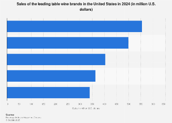 Beverage Industry Magazine. “Sales of The Leading Table Wine Brands in The United States in 2024 (in Million U.S. Dollars).” Statista, Statista Inc., 9 Jul 2024, https://www.statista.com/statistics/251955/leading-table-wine-brand-sales-in-the-us/