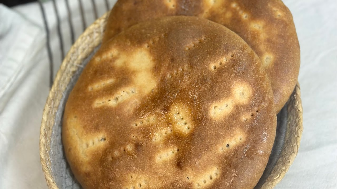 Traditional Tabouna bread is baked in a vertical clay oven. This version is adapted for home ovens.