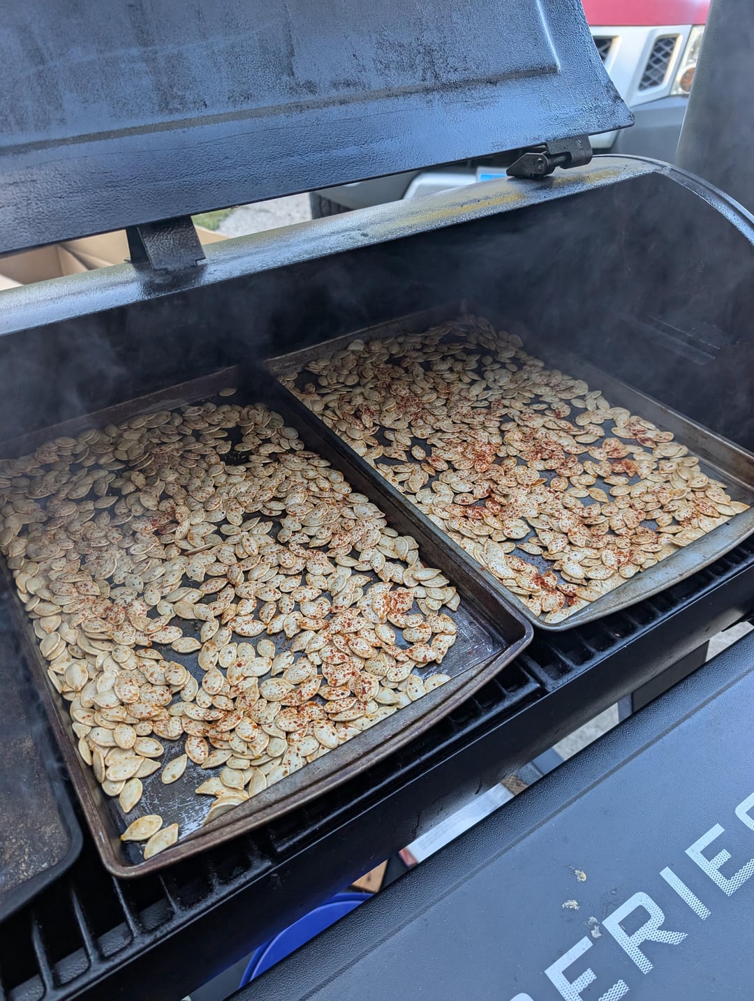 Carved some pumpkins so I had to make some smoked pumpkin seeds!! by Midwest_Plant_Guy 9 Comments BeneficialExtreme738 1 week ago Pumpkin seeds are the bomb when cooked right! Moermann28 1 week ago Hot and fast? Mythradites 1 week ago Temps and times my guy! TEACH US THE WAY!!! Evening_Service_3703 1 week ago Sounds fantastic. Amazing, so many people throw them away. Mom use to bake them when I was a kid, delicious. Difficult_Cheek_3817 1 week ago Love the guy on the right msmakeithappen87 1 week ago Looks yummy I just made some homemade queso dip msmakeithappen87 1 week ago Cool I’ve always loved queso dip i just did something simple with camelized onions added made best with what I had i wanna get a food truck and travel SadBurrito84 1 week ago Good golly miss Molly!! ned_luddite 1 week ago I’d love to hear a review of the flavor! Haven’t had any seeds since I was a kid. 40 years ago. 👻