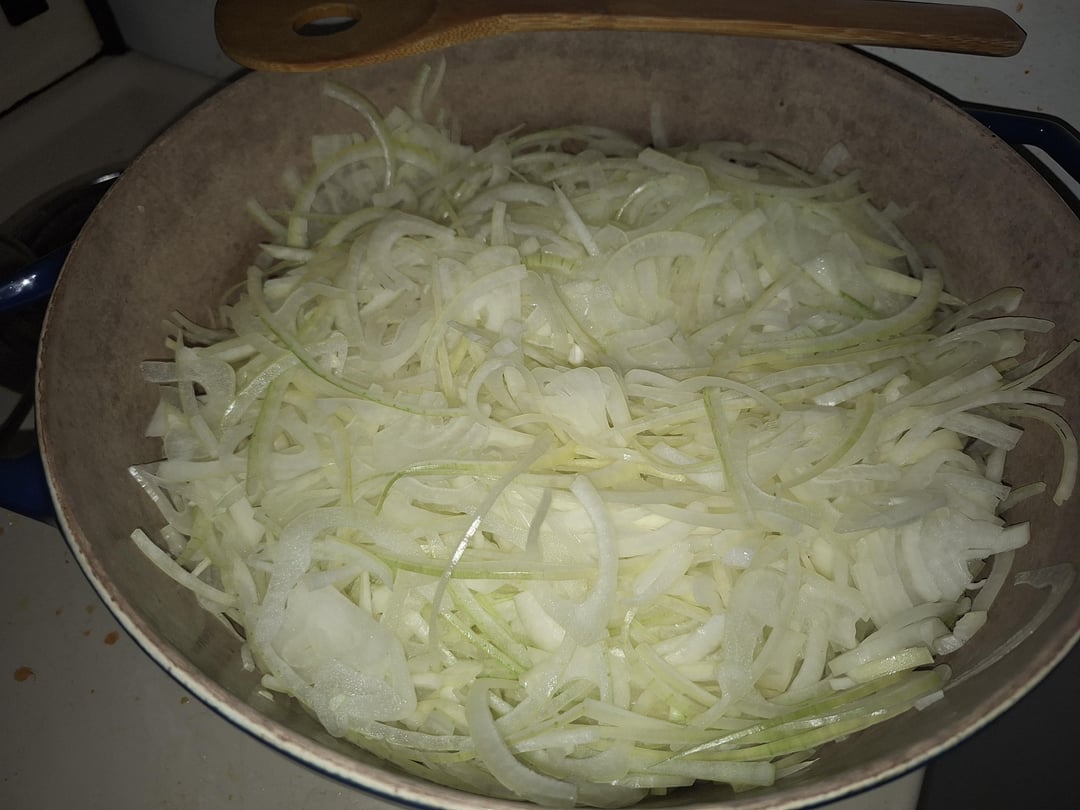 A few weeks back, I was inspired by all you onion lovers to make a batch of caramelized onions. Bought a 10 lb bag and immediately turned half into the golden delicious paste. Tonight I find myself repeating the cycle and enjoying the time spent prepping, cleaning up and tending to the pot. And I still had time to make dinner and bake some brownies in between it all.